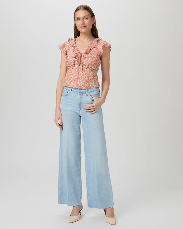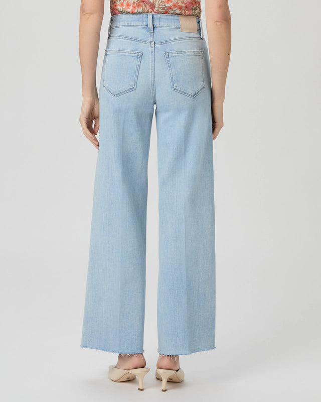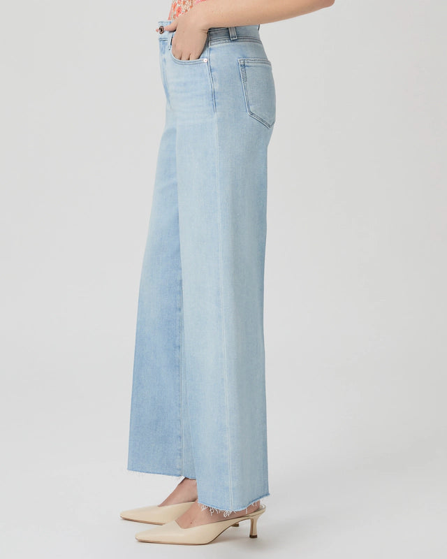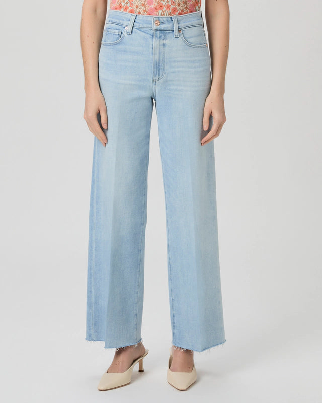 This modern high-rise wide leg has a slightly relaxed fit and a 31" inseam. This pair is crafted in PAIGE Vintage denim and comes in a lived-in light blue wash with a raw hem. PAIGE Vintage takes all of the work out of breaking in your favorite pair of vintage jeans. We've combined the comfort of stretch with everything you love about authentic vintage denim to create super soft jeans that feel perfectly lived-in from the very first wear.