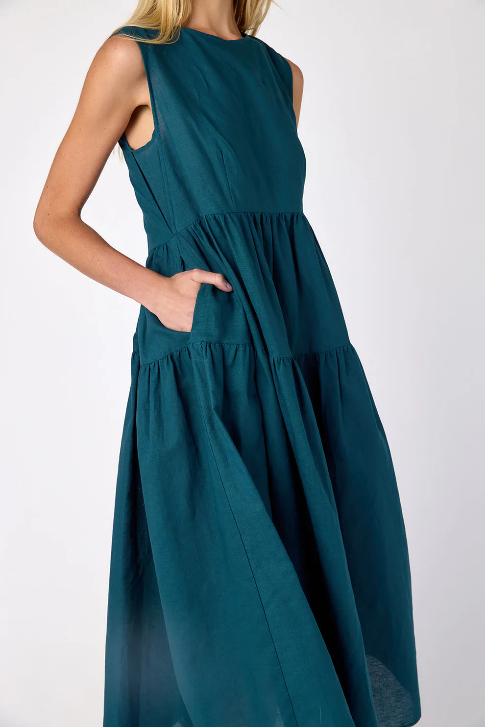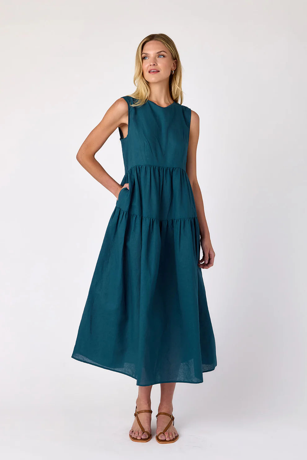 The Arlo Dress is a CROSBY team favorite! This sleeveless, tiered maxi is bra-friendly and designed with a button-back detail and pockets. With its effortlessly flowy fit, it's the perfect choice for every spring occasion on your calendar.