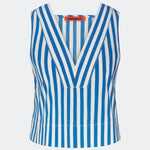SLEEVELESS COTTON POPLIN TOP WITH A RELAXED FIT AND SLIGHTLY CROPPED SILHOUETTE. FINISHED WITH CONTRAST STITCHING AT THE NECKLINE AND HEM FOR A SUBTLE GRAPHIC TOUCH.