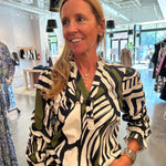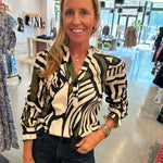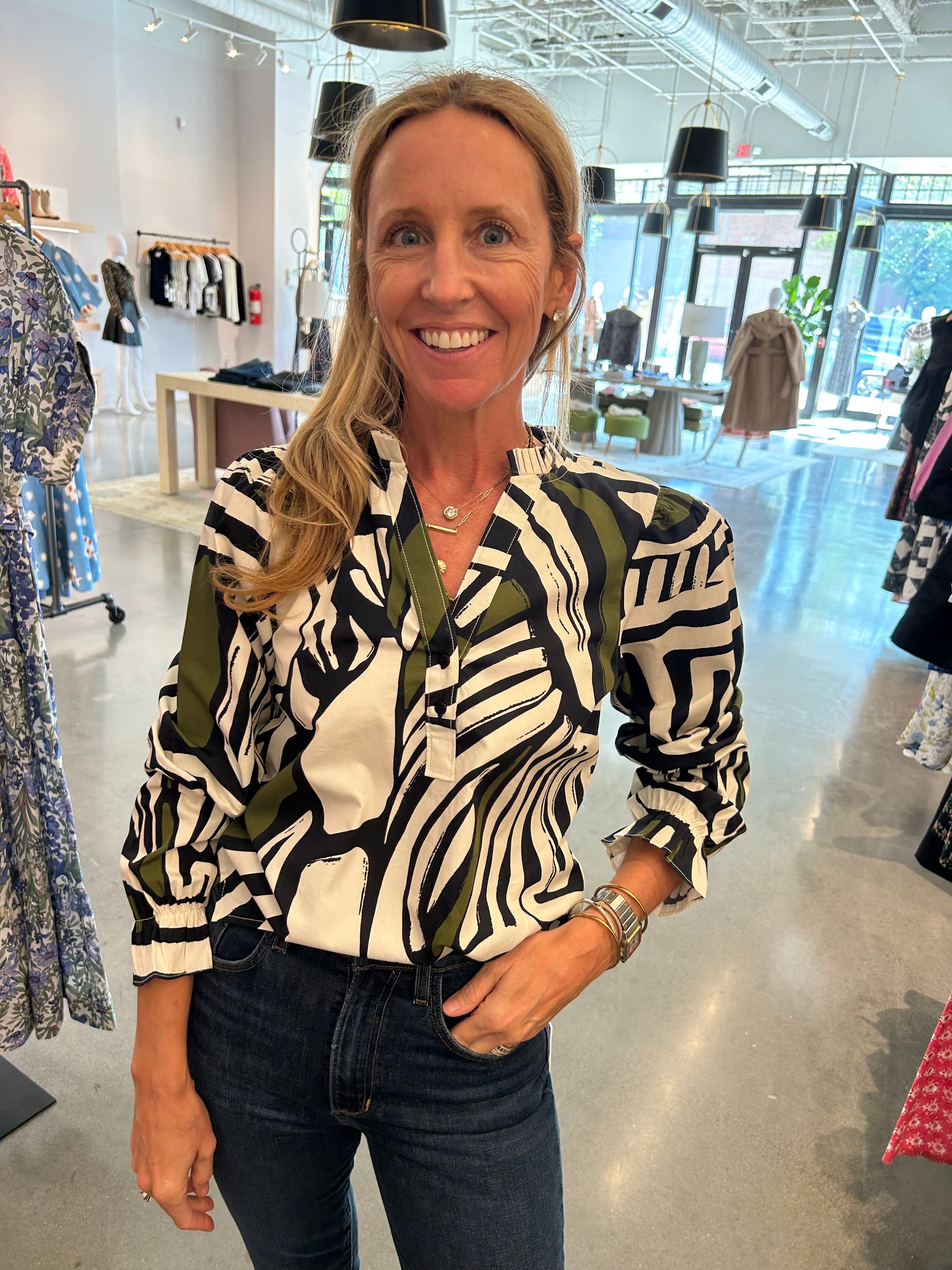 The Ashley top is a simple cotton blouse with a bold pattern that is perfect for fall. Pair it with so many things to complete the look.