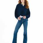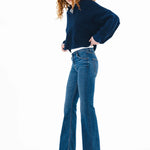 The Bond Street is your go-to flare—cut from soft Japanese stretch denim with just the right amount of structure. A sleek mid-rise and slim fit through the hip open into a dramatic full-length leg with a 21" opening. The classic five-pocket styling and saturated Paris wash make this jean an effortless standout for day or night.