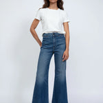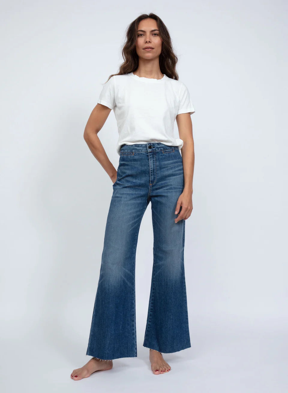 This cropped version of the Brighton Wide Leg gives a fresh feel to a fan favorite silhouette. The Daytona wash is a vintage-inspired light blue with worn-in fading and whiskering in our signature Japanese stretch denim.