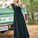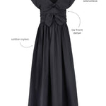 Introducing the Calista Dress, a striking new silhouette in the HB lineup and destined to be a wardrobe favorite. In timeless black, it is anything but basic. The elegant V-neckline and sleeveless design are elevated by adjustable tie-front details at the bust and waist, creating a feminine, figure-flattering shape that feels custom-made. A full skirt moves with graceful ease, while the structured cotton-nylon blend with soft stretch lining ensures all-day comfort without losing its polish. Whether styled simply for a sleek, modern look or accessorized for an event, Calista proves that a solid black dress can be the most memorable piece in the room.
