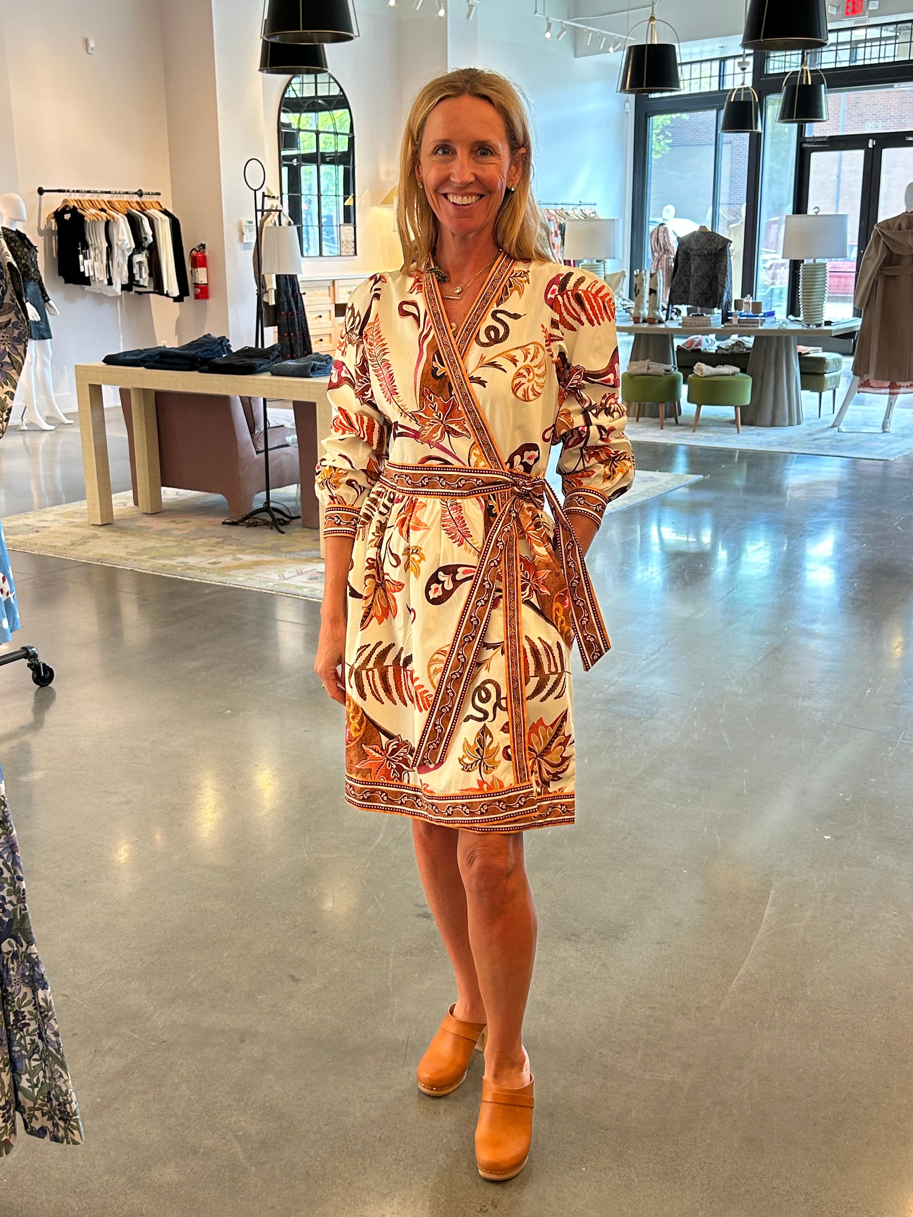 Fall color pallet achieved. This wrap dress is a fun addition to your fall wardrobe.