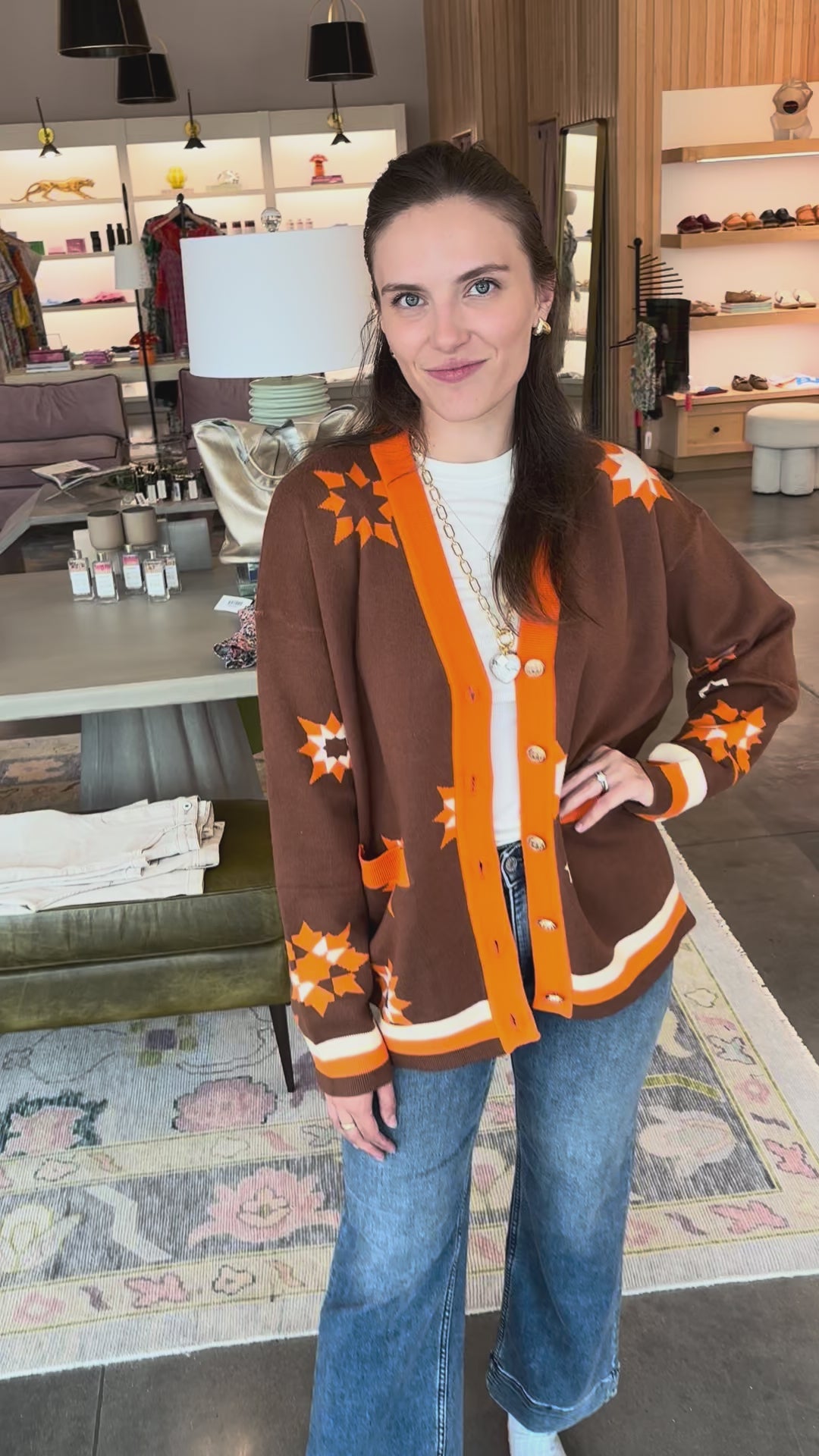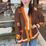 The colors of fall in a perfect combination. This cardigan is a bit oversized and ready to take you anywhere. Perfect for travel. Throw is on for a chilly morning with jeans.