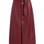 Black might be the traditional power color, but this look—the monochrome matchup between our vegan leather Chelsea skirt in Brick and our Carrey top in Rust—makes a strong case for a boldly feminine silhouette. The Chelsea looks just as good in the boardroom as it does at a Michelin-starred dinner.