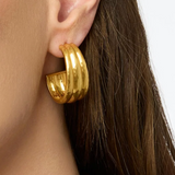 A fluted hoop crafted from three softly tapering golden bands with a lightly hammered finish