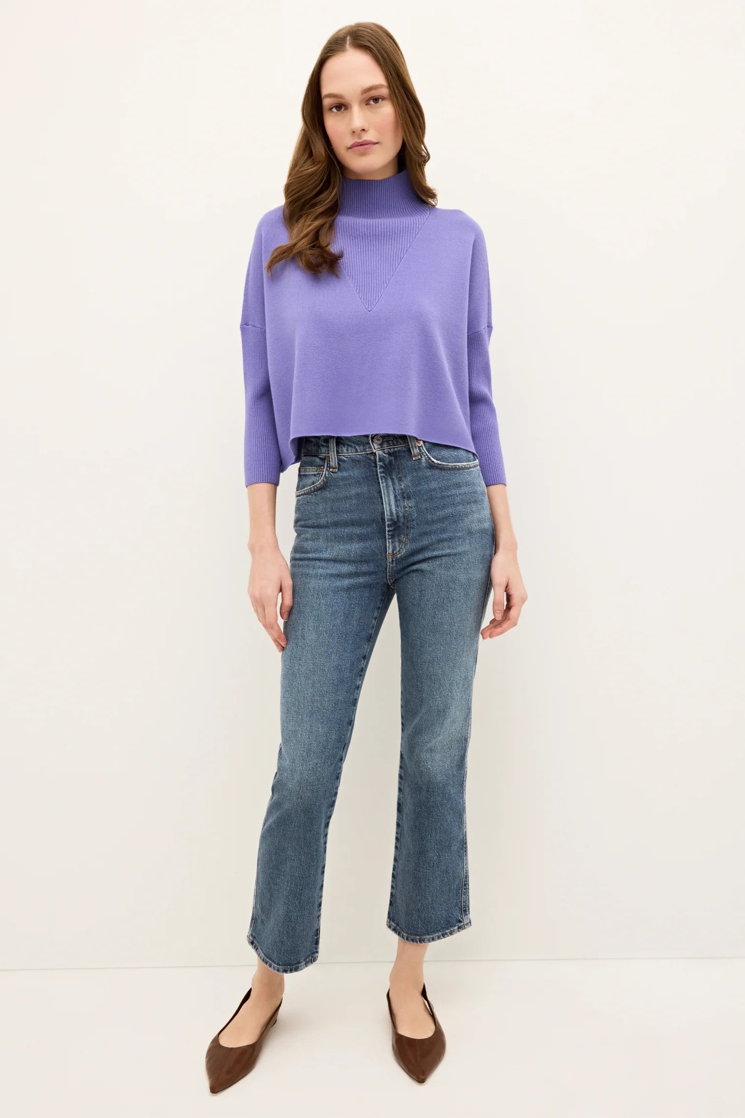 Pair this crop top with your favorite high-waisted jeans or maxi skirt. The Claudie Popover by Marie Oliver is a chic cropper sweater with a relaxed fit that effortlessly elevates your wardrobe. Designed with three-quarter-length batwing sleeves and a mock neck, this piece boasts ribbed knit detailing for added texture.