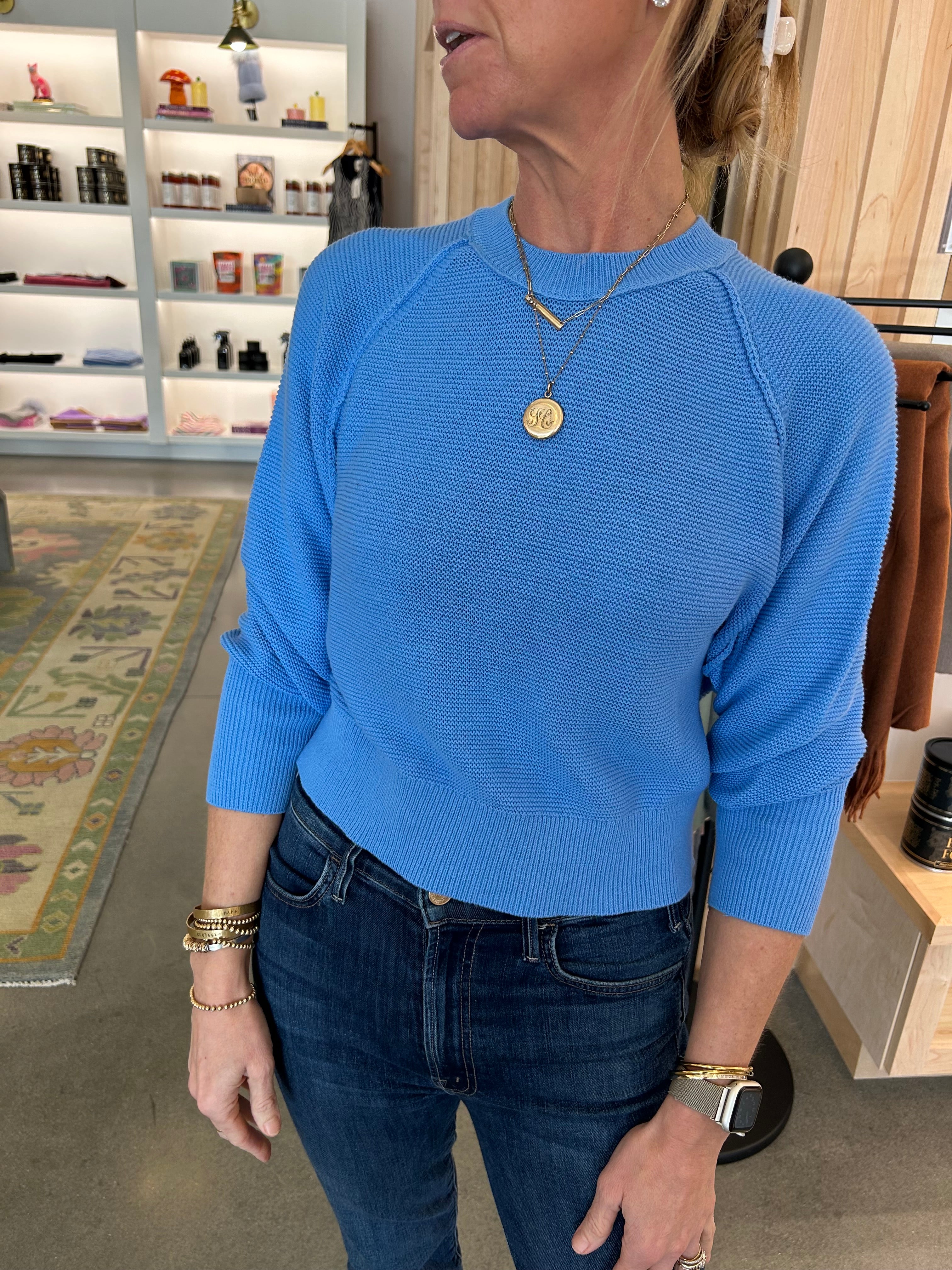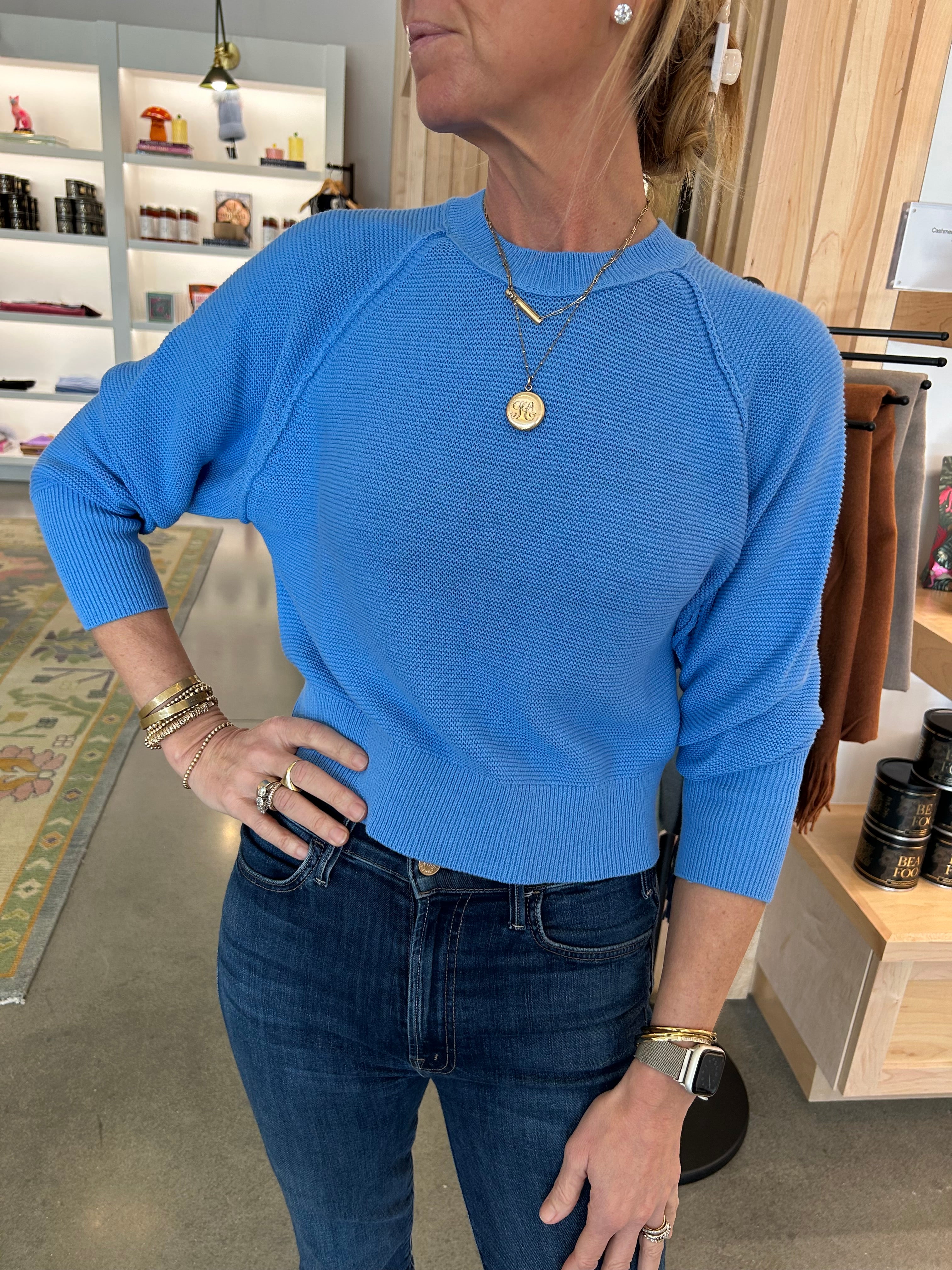 Cotton Moss Raglan Crew Sweater -Cornflower