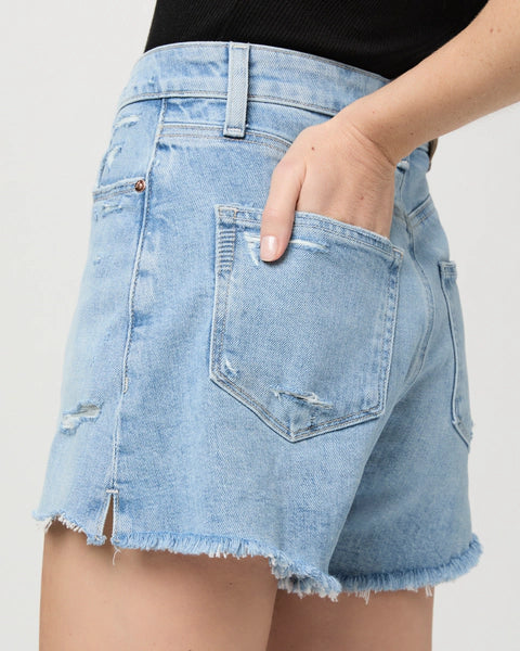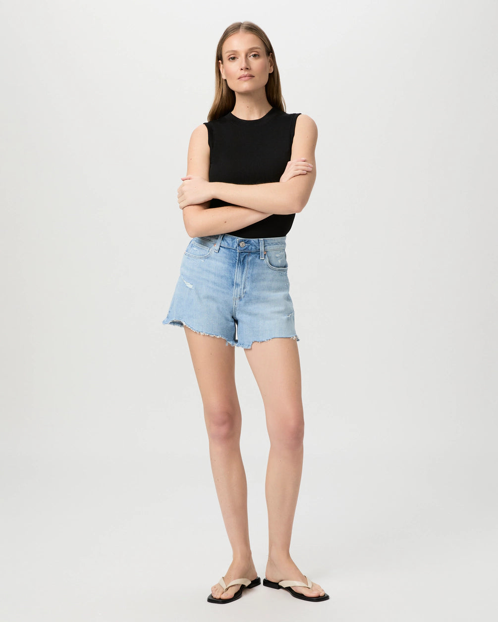 Modern meets vintage with the Dani high-waisted short. This style is designed with an ultra high-rise and slightly A-line silhouette. This pair is cut from PAIGE VINTAGE denim in a light vintage-inspired wash with a raw hem. PAIGE VINTAGE takes all of the work out of breaking in your favorite pair of vintage denim shorts. We've combined the comfort of stretch with everything you love about authentic vintage denim to create super soft denim shorts that feels perfectly lived-in from the very first wear.