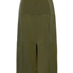 This pencil skirt certainly isn’t just for the office. Given a modern twist in Juniper Green vegan leather, its figure-skimming silhouette is fitted at the waist and hips, featuring pick-stitch detailing along the seams and an invisible center back zipper. Complement it with an ultra-feminine top like the Pelumi in clover, or a textural sweater like Tinley when temperatures begin to dip. One of the most versatile bottoms, it adds a touch of glamour beyond the canonical 9-5, extending into cocktail hours and special occasions.