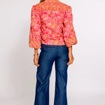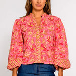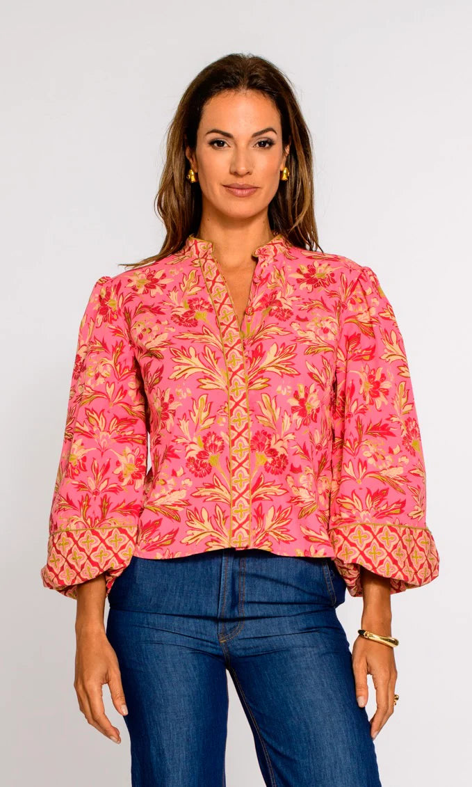 The Emily Top is the perfect button front blouse, featuring a mandarin collar, covered placket, and balloon sleeves. This season, she is cut from a cotton blend fabric in our Grandeur Cherry print, perfect for dressing up or down this season.