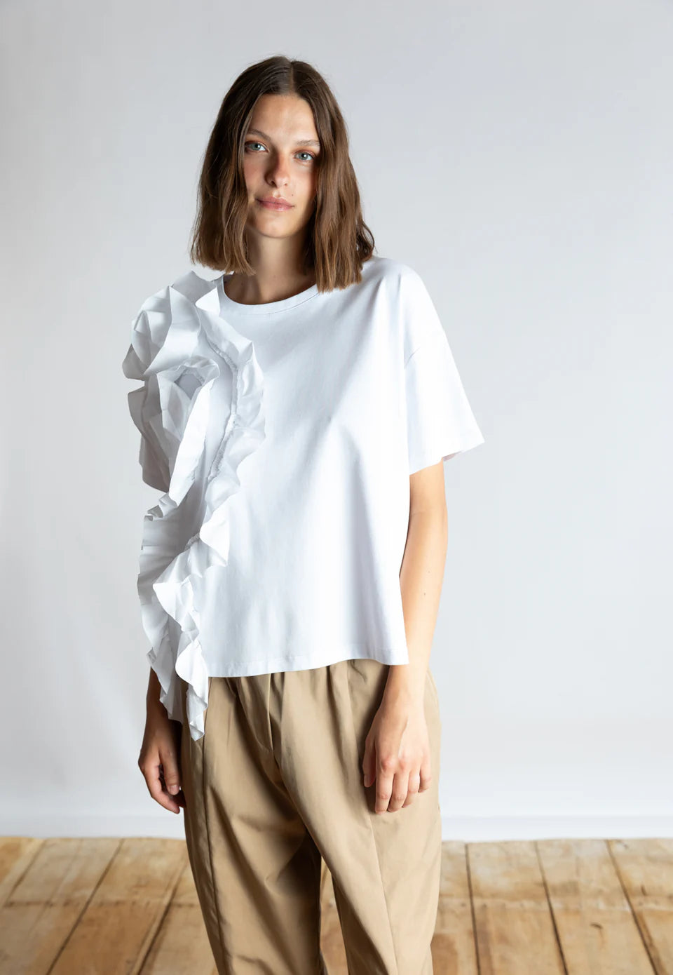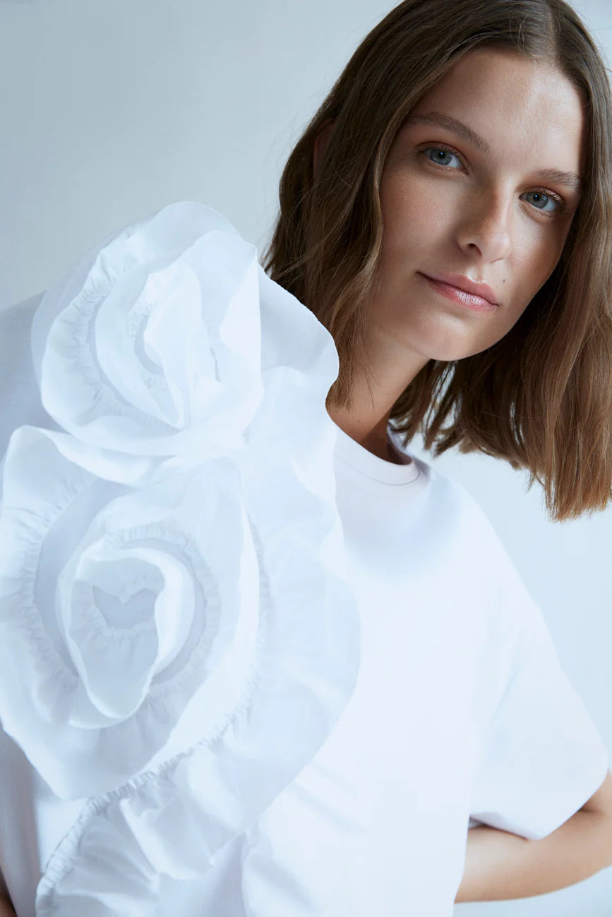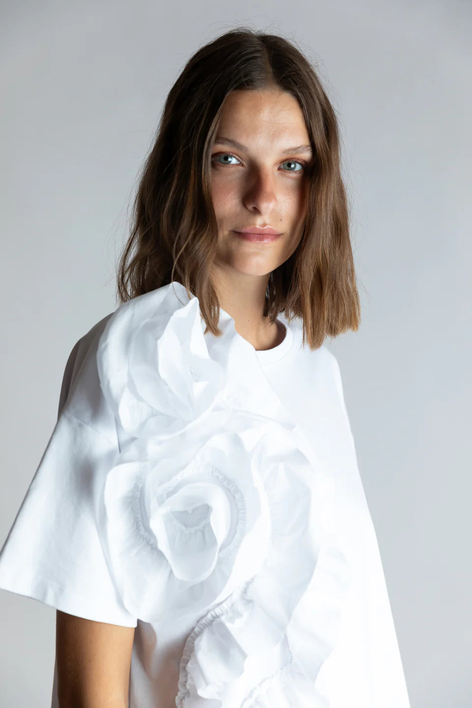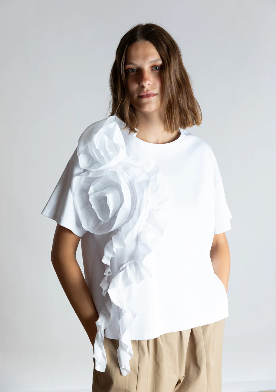 The most simple yet fun top we have! The detail is too good, and we love the big textured flower! you will too!