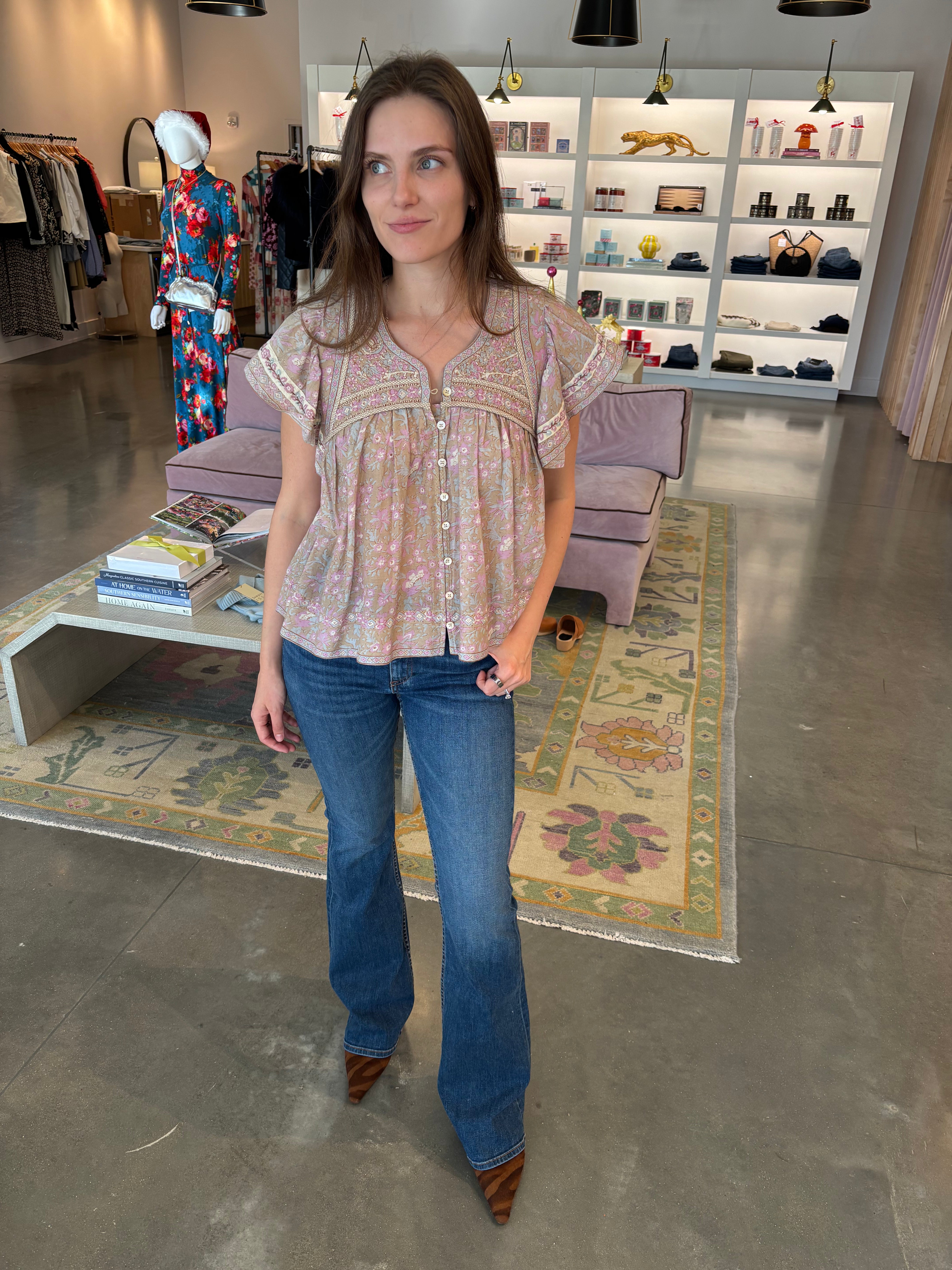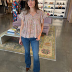 Gisela Print Flutter Sleeve Top -Pink