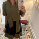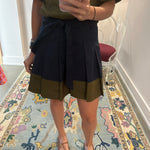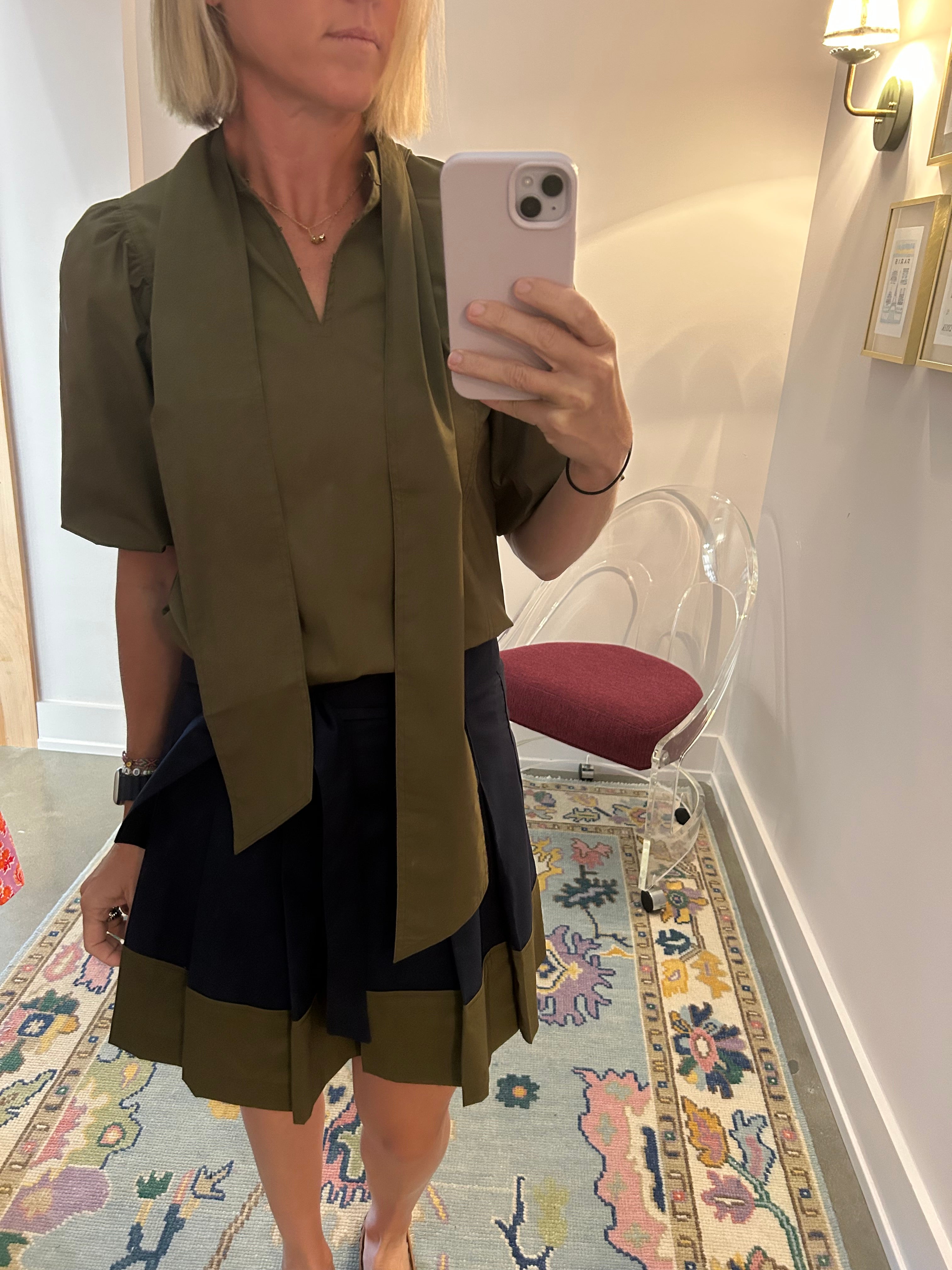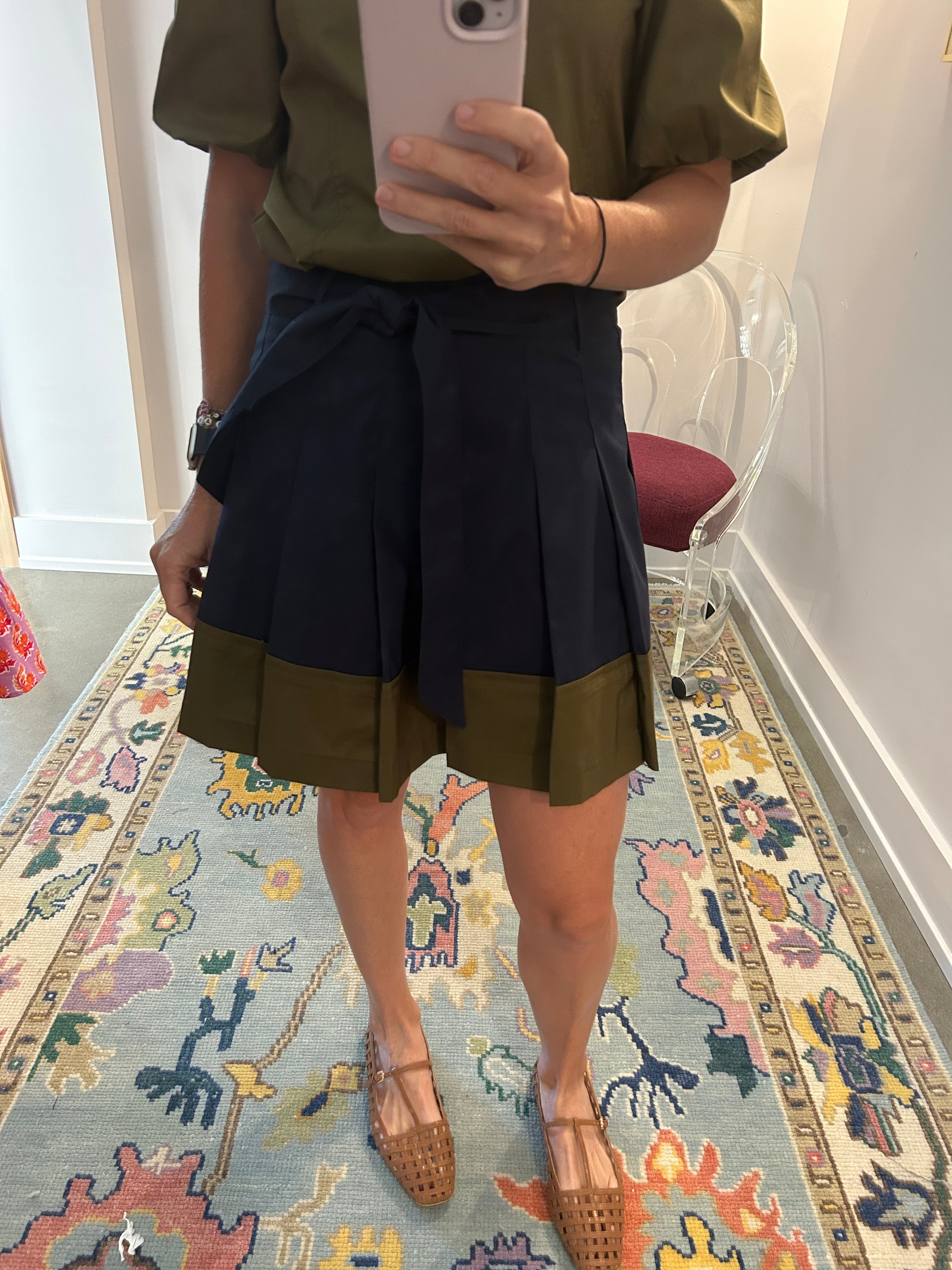 It’s back..the skort. This updated version is perfect for anyone on the go! The navy and green combination is a winning pair.