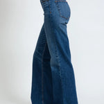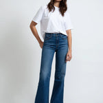 Our take on a tailored flare. The Juniper Wide Leg features a flattering slim fit through the hip and thigh before opening into a wide leg with a subtle flare. Finished with a clean hem and made in our bestselling Auburn wash using 10 oz Japanese denim with a touch of stretch.
