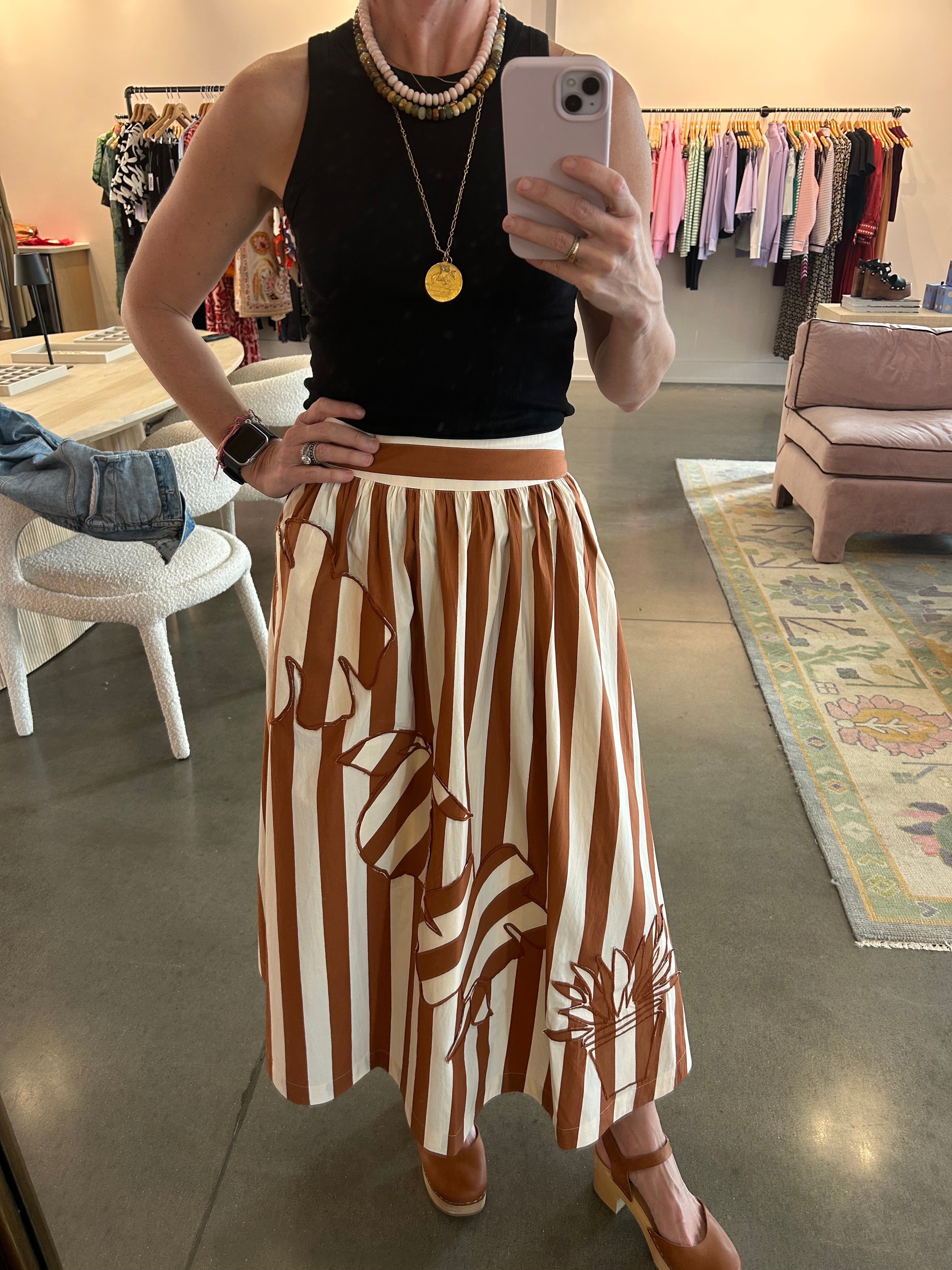 The Kit Skirt blends ease and charm with its flattering high waist. Designed with a full, flowy silhouette and soft gathering at the waistband, it moves beautifully and pairs effortlessly with both elevated tops and simple tees.