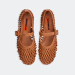 A CLASSIC BALLET FLAT SILHOUETTE WITH ADDED FLAIR, CRAFTED IN HAND-KNOTTED NETTING WITH OPEN DETAILING THROUGHOUT. FINISHED WITH AN ADJUSTABLE STRAP FOR EASY, SECURE WEAR.