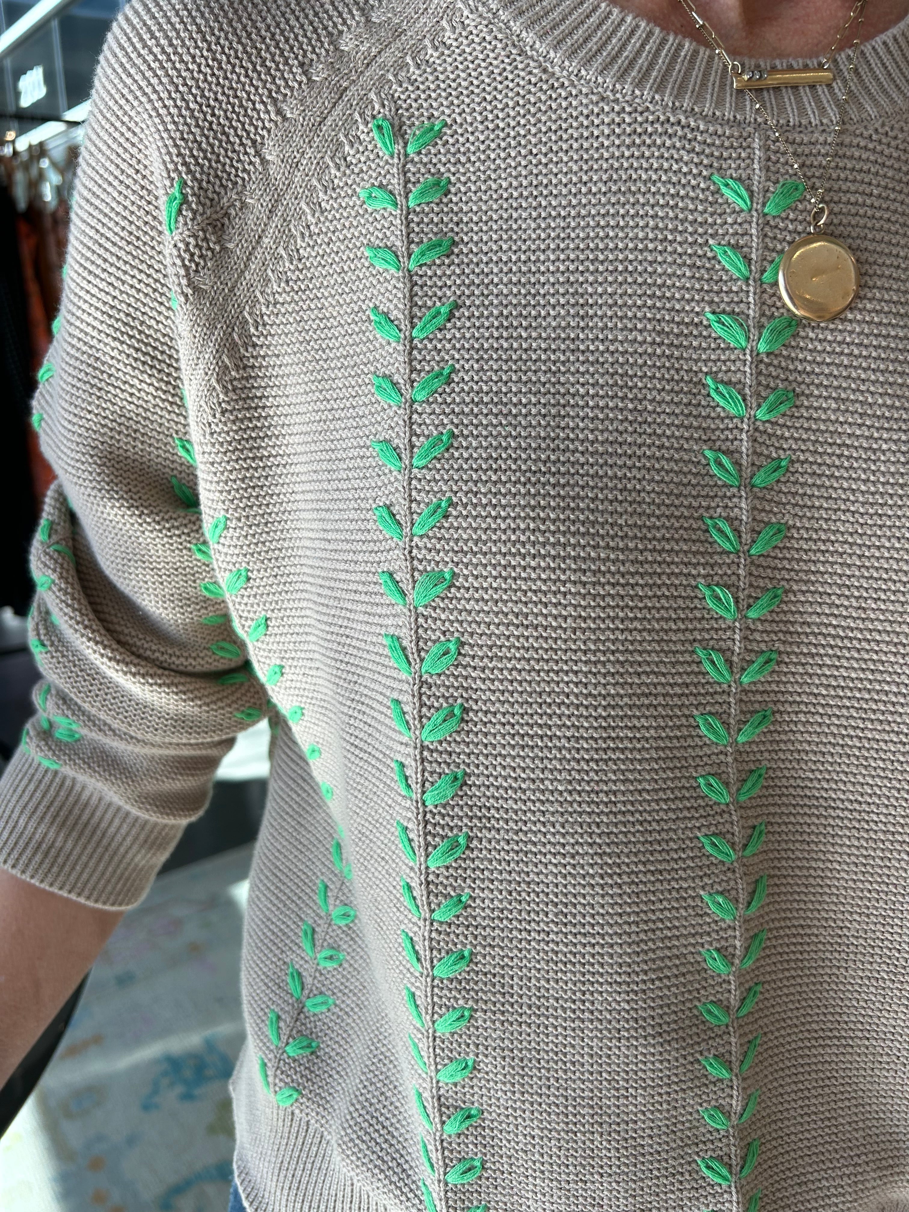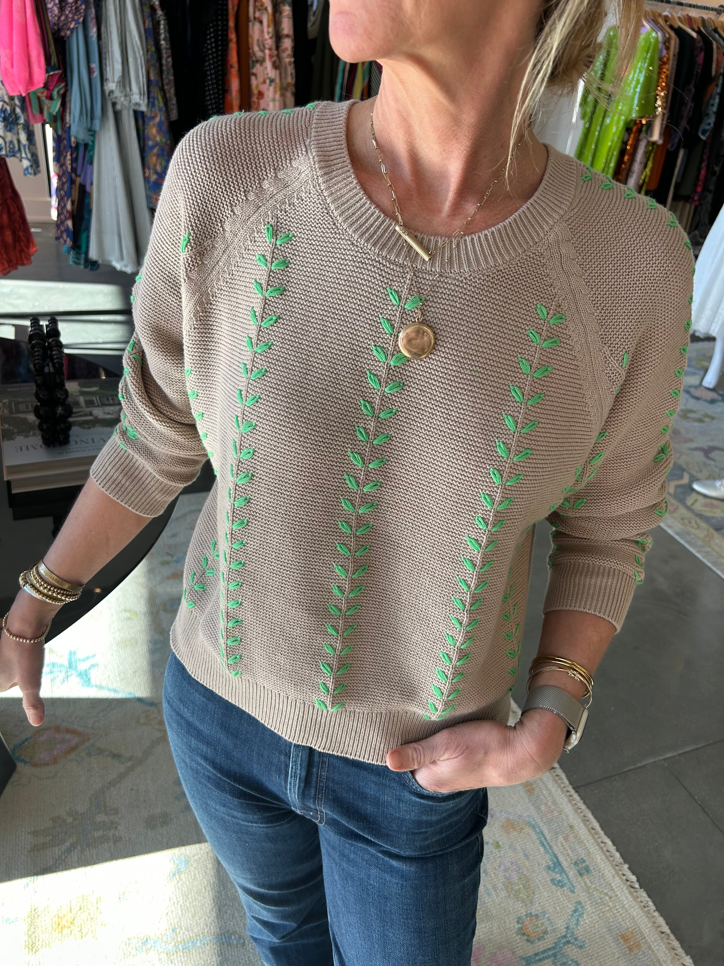 Leaf Crew Cotton Sweater -Biscuit Apple