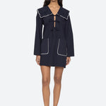 The Marie embroidered dress features front tie closures, detailed eyelet embroidery throughout and mini silhouette.