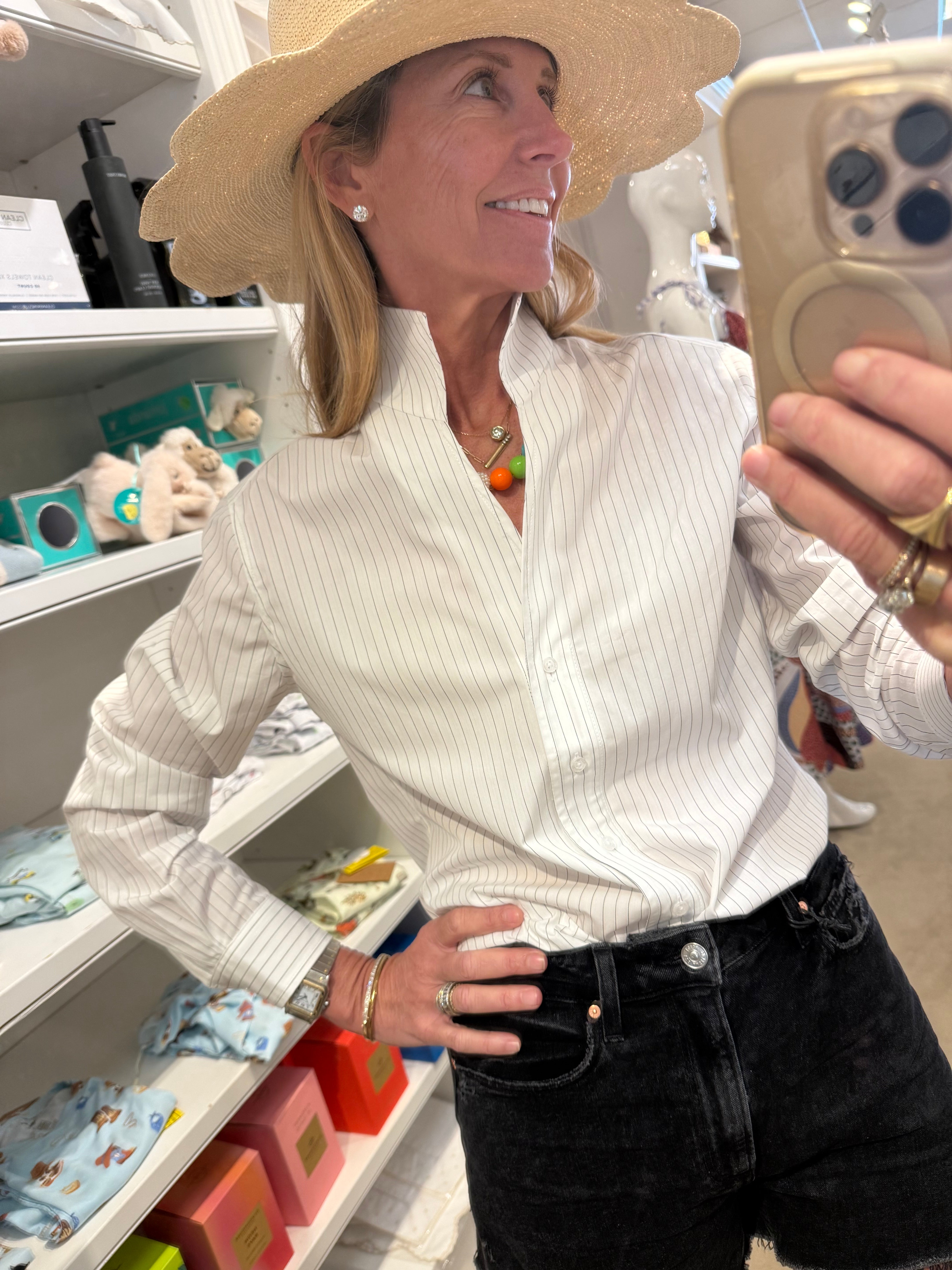 Back by popular demand: our top-selling style from last season. The Natalie Shirt features a sleek stand collar and tailored silhouette, making it the perfect base layer. Wear it solo for a crisp, clean look or under your favorite blazer or sweater for polished, all-season style.
