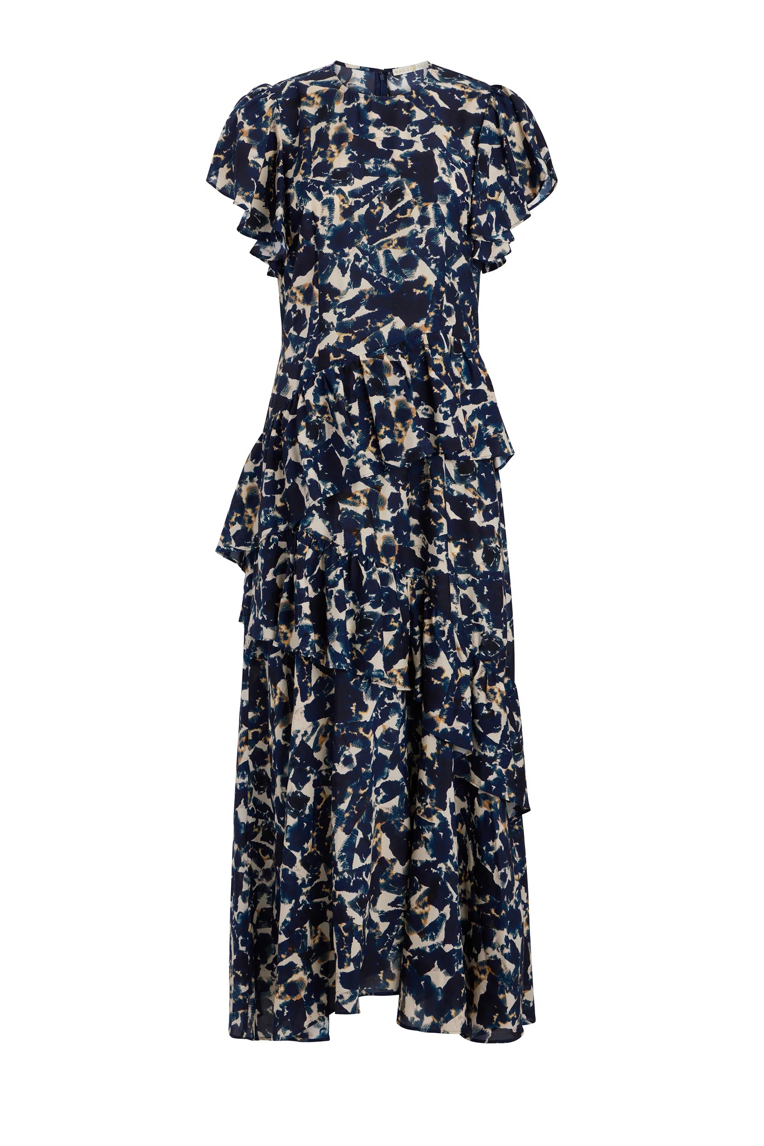 Your new fall occasion dress has arrived in all of Quinby's tiered, flounced, and floral splendor. Airy silk mix meets bloom, our painterly fall scorchd botanical print that will be the star of every party. The flattering effect of the fitted top that cascades into a ruffled skirt is both comfortable and effortlessly versatile, taking you from baby to bridal shower or an elevated date night.