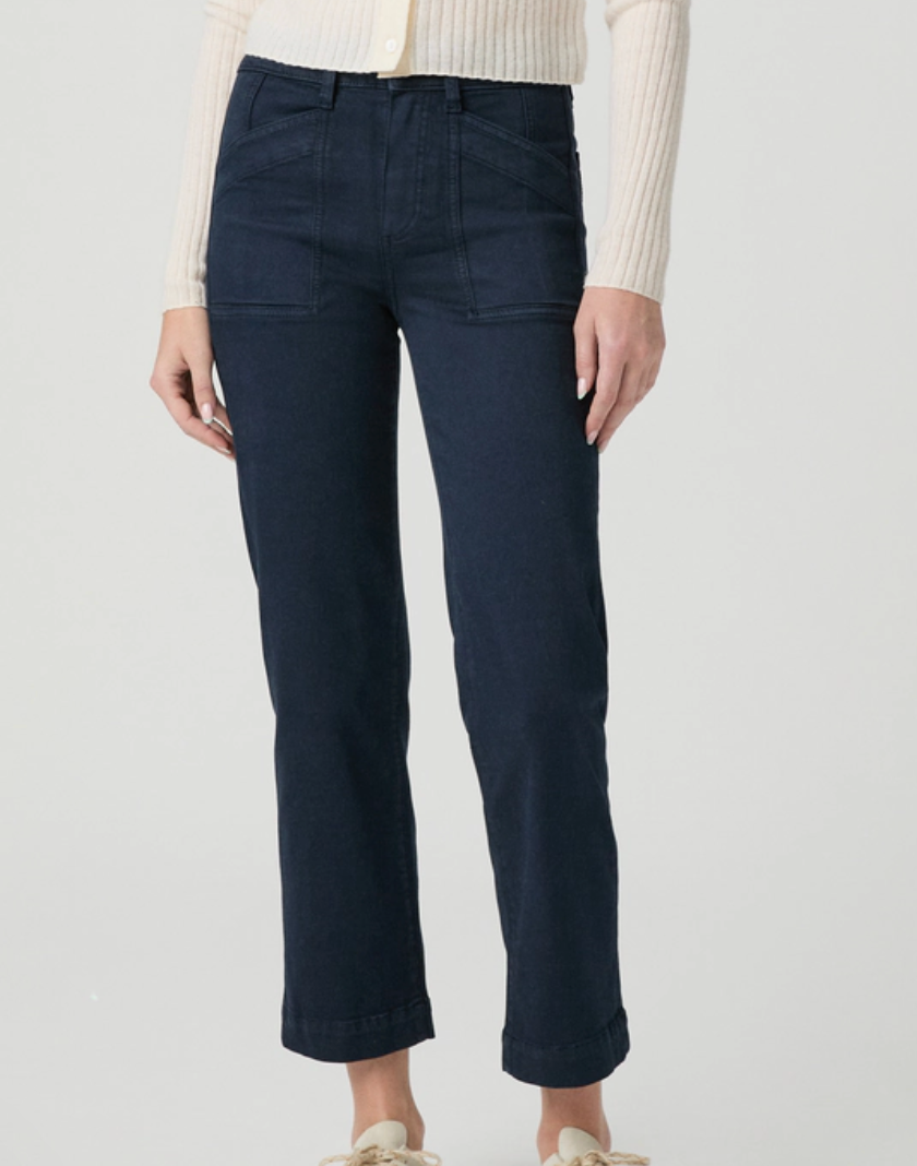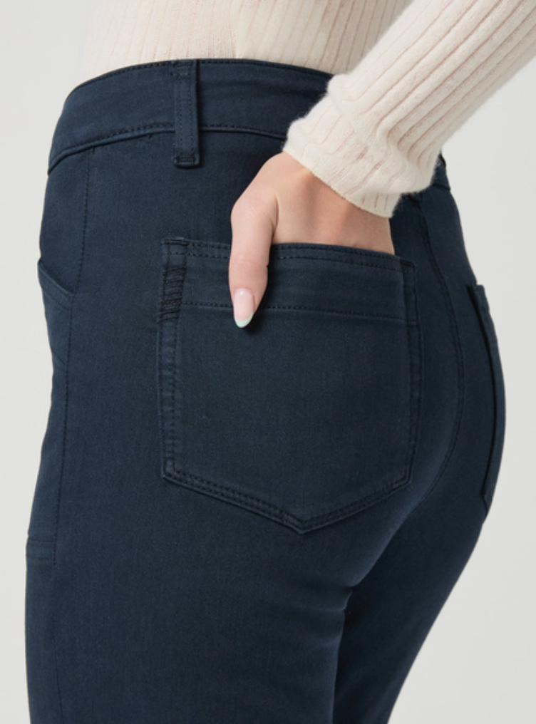 The Quincy Ankle is our mid-rise straight leg with an ankle length inseam and angled patch pockets. This effortlessly cool pair is crafted from a super soft fabric with the perfect amount of stretch in a vintage-inspired navy blue hue.