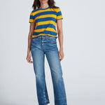 Model is 5'7" and wearing a size 25 with the Boy Tee in size 1
