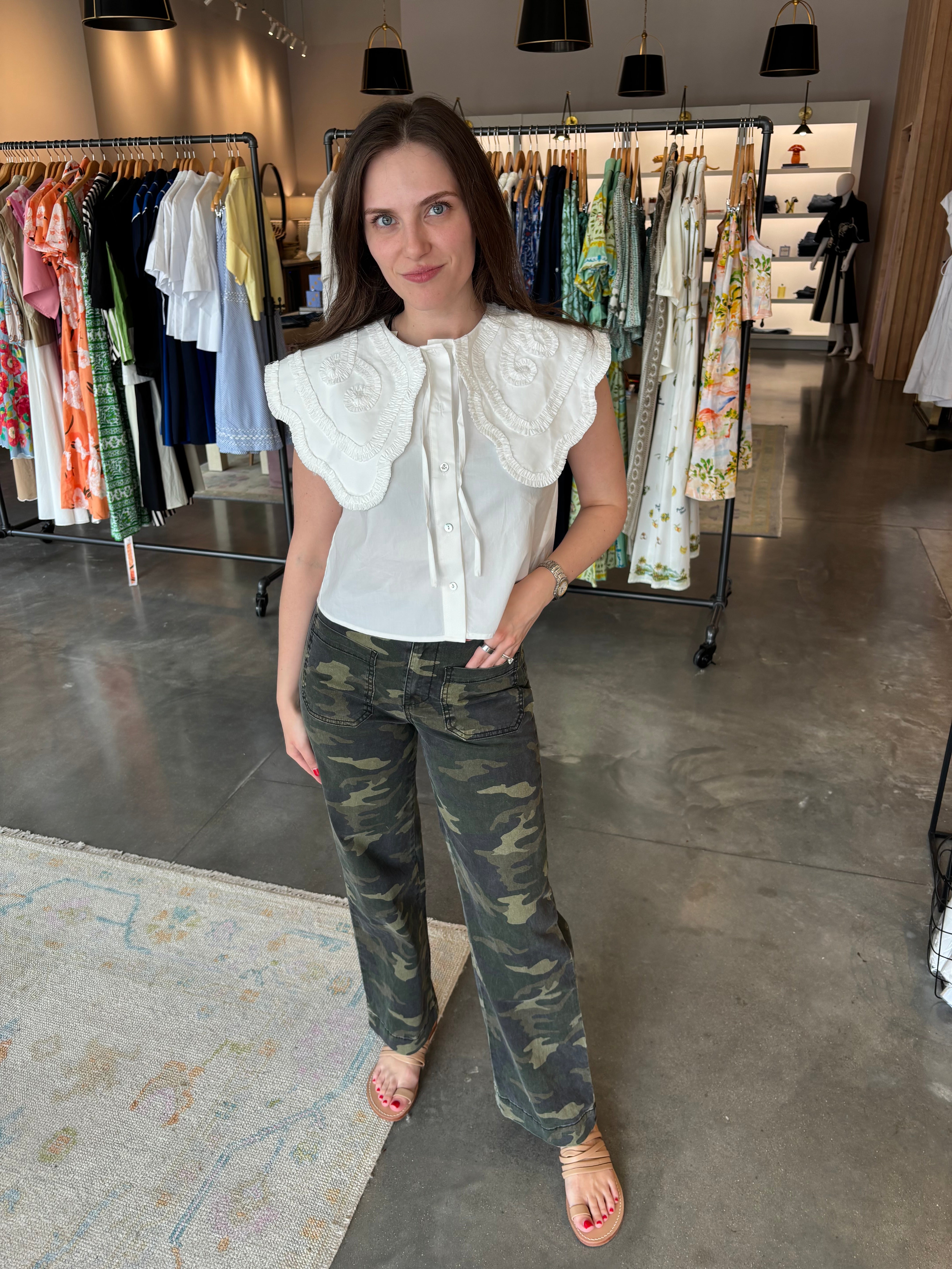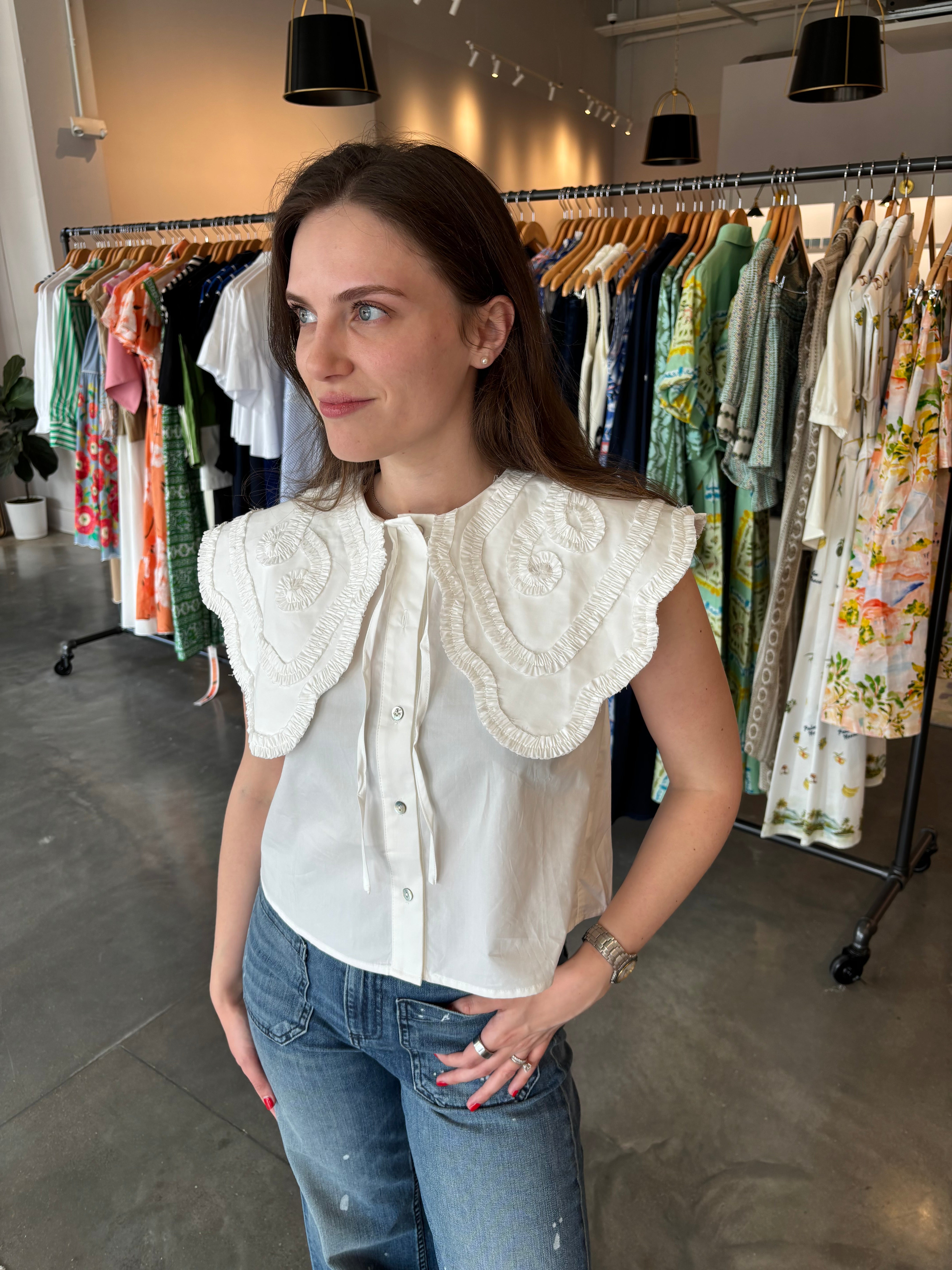 Ruffle Embroidered Collar Shirt