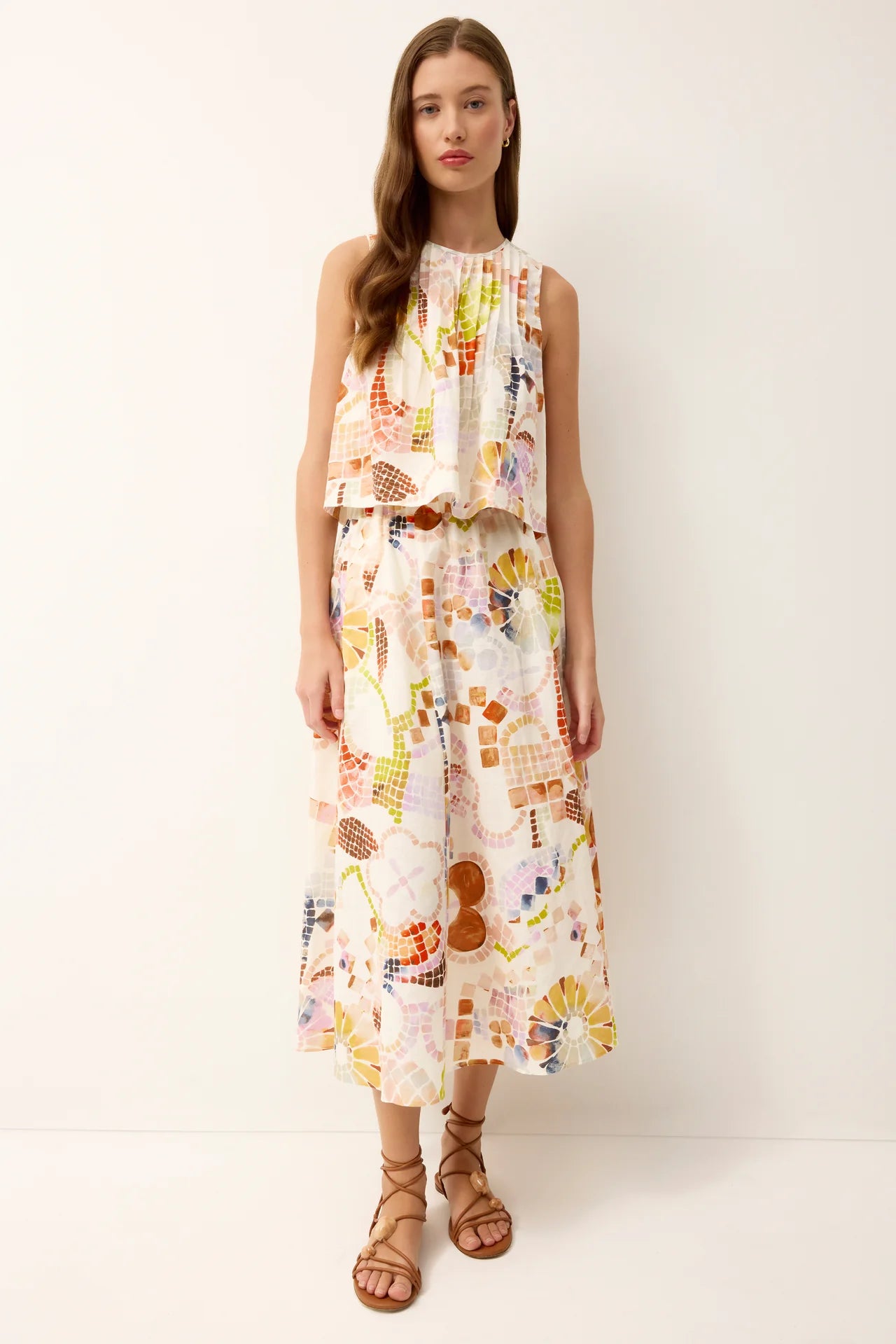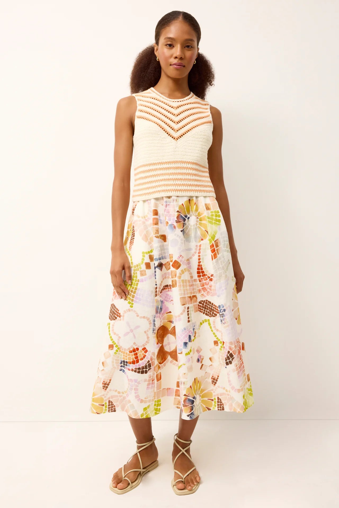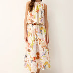 Our Sasha skirt is as fun to wear as it is flattering. A best-selling silhouette, it features easy volume, a comfortable elastic waistband that sits at the natural waist, and pockets for everyday practicality. This season, Sasha gets an artful touch in Travertine, a rainbow watercolor mosaic print. Pair it with a simple tank or the matching Letta top for a polished, print-forward look.
