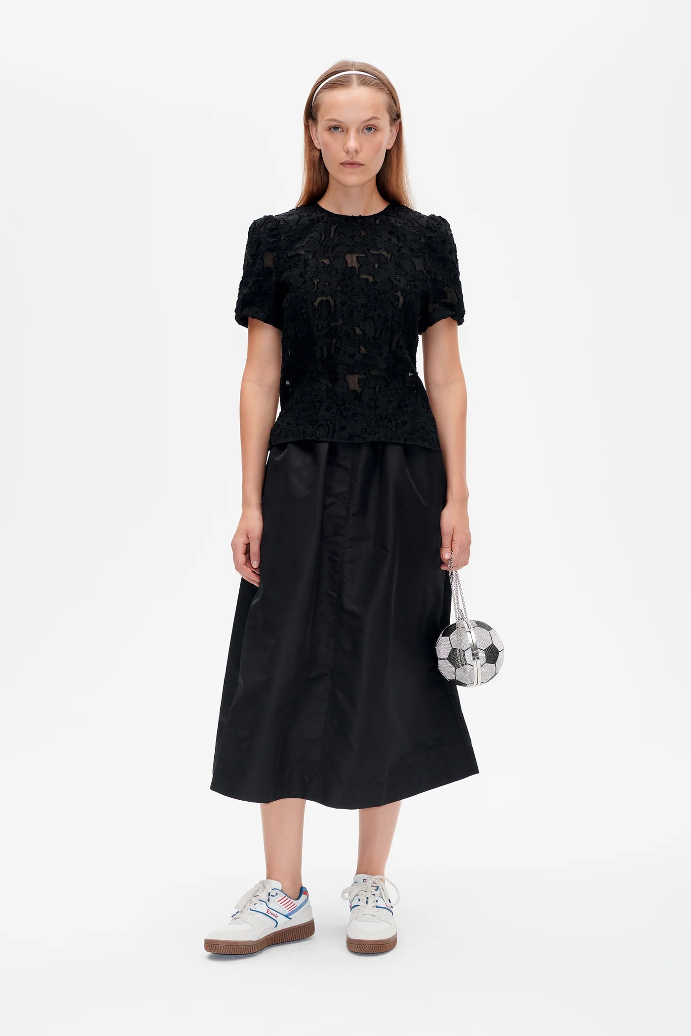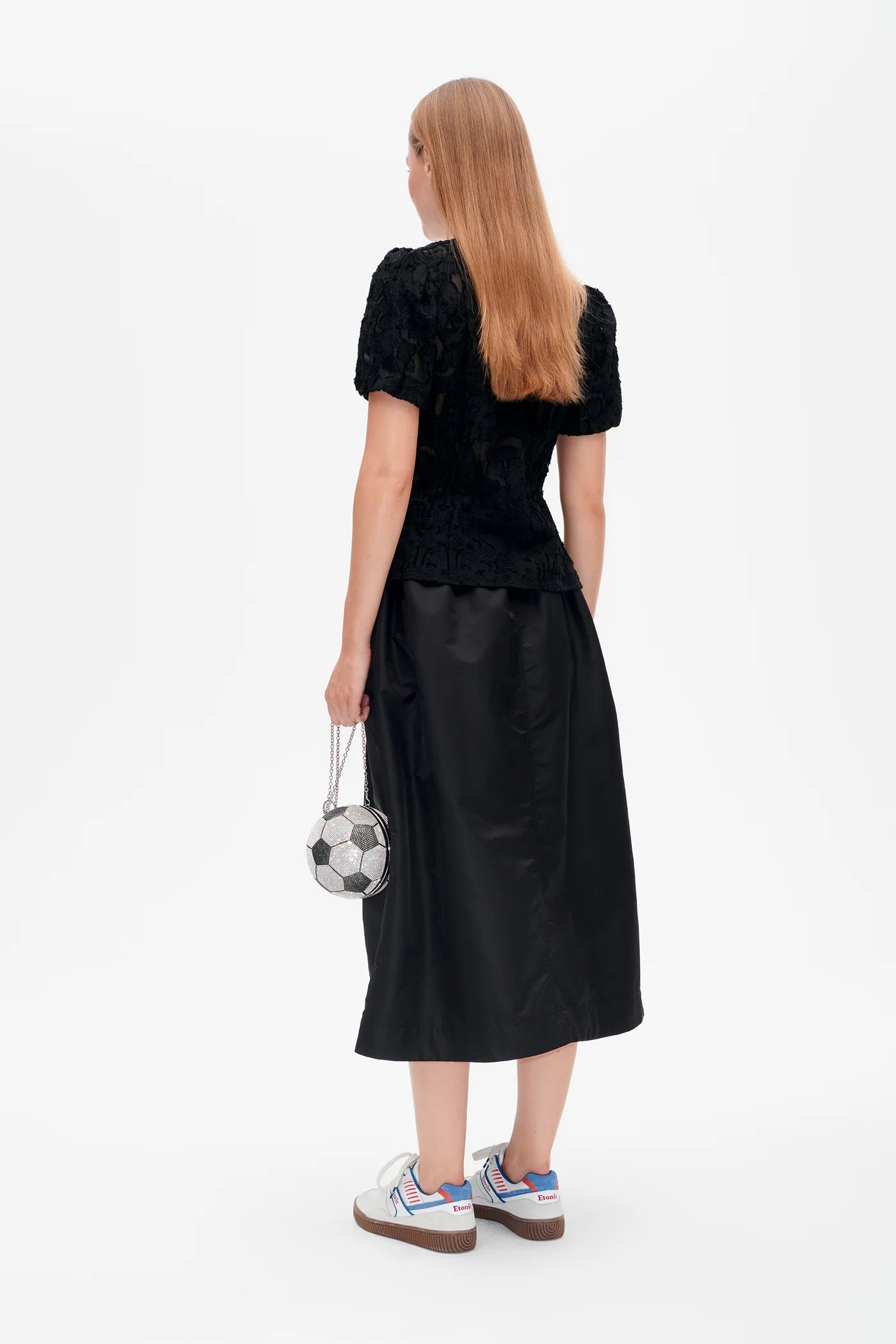 The Sibella Skirt is an A-line, midi-length skirt crafted from lightweight nylon, combining a sporty edge with timeless elegance. Featuring a high waist and an elasticated waistband, it offers a comfortable and flattering fit. Hidden side pockets add functionality, while the embroidered logo at the bottom provides a subtle branded detail.