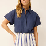 A true crop top, Sierra puts a fashion-forward spin on the traditional button-down, lending fresh youthful energy to your look, especially when paired with signature skirt silhouettes like Faith, or shorts like Lander.