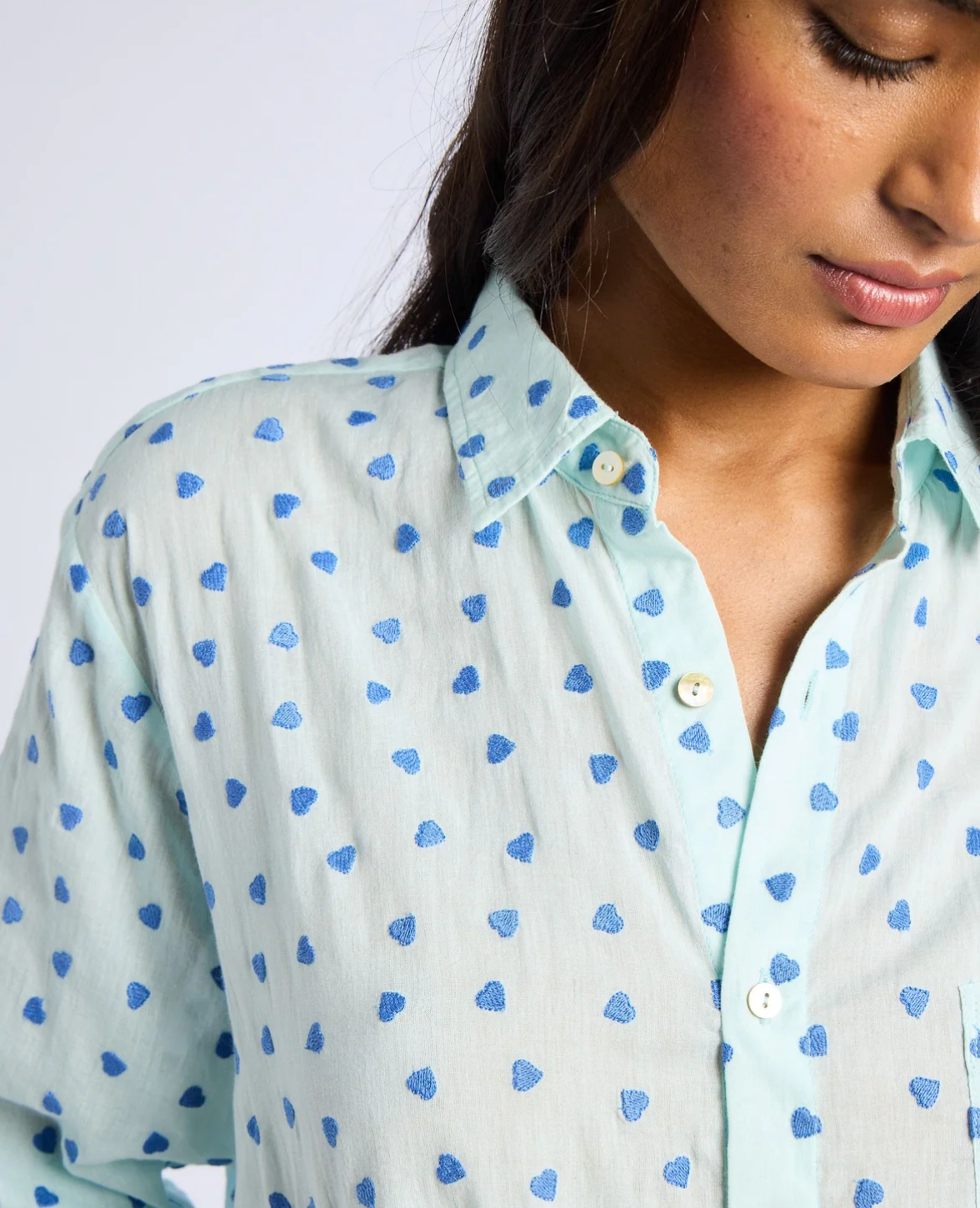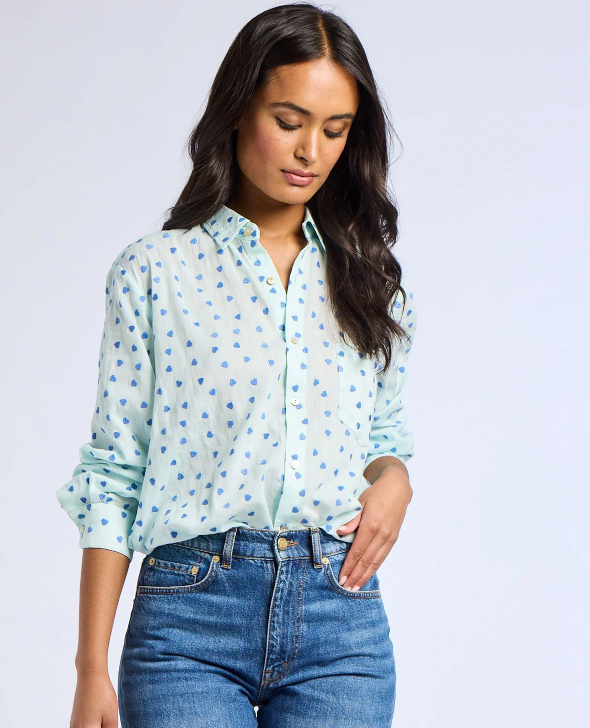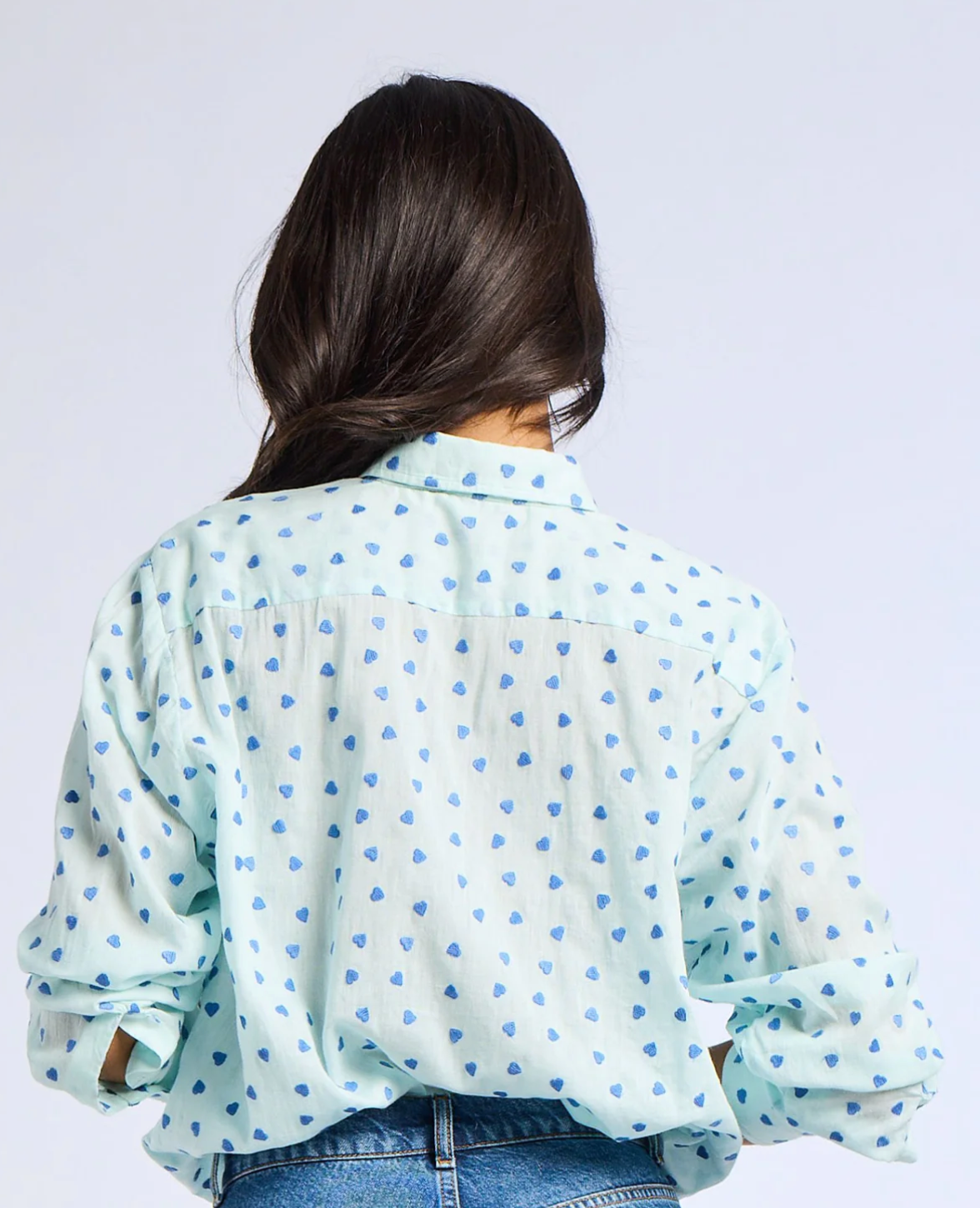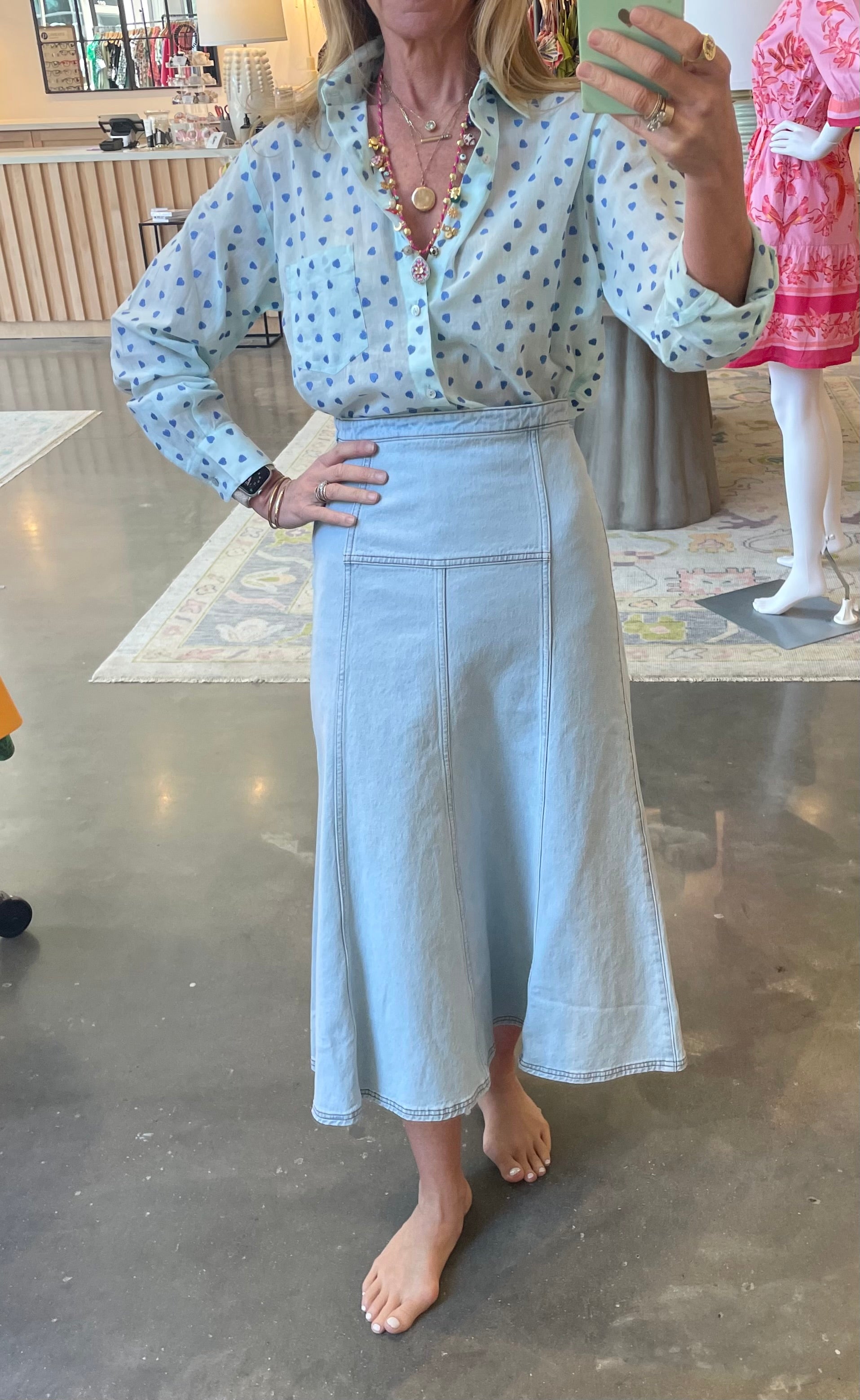 Blue on blue lightweight top is a must have. Button down style and perfect to throw on with anything.