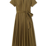 The Stuart Midi Dress carries a quiet sense of ceremony—softened by its flowing pleats and olive tone. It’s the kind of piece that feels composed, equally suited for an evening in town or a stylish departure.