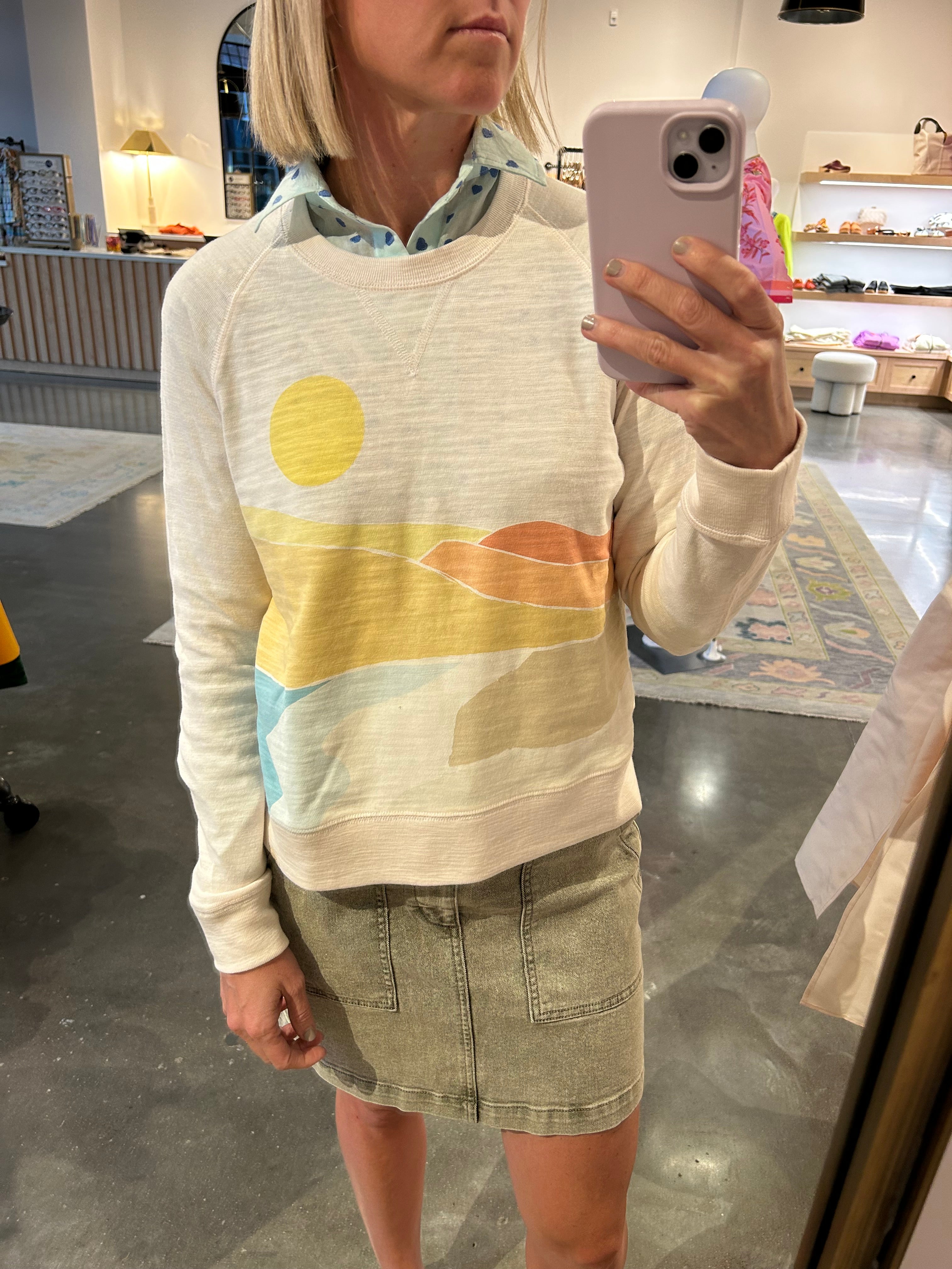 Our slub knit fabric, made from high-quality organic cotton, is combed for exceptional texture and softness. Featuring a breezy, beach-inspired graphic, this lightweight layer is perfect for fun in the sun. It’s got all the comfort of your favorite sweatshirt without the extra weight, making it an easy go-to for sand, surf, and everything in between.