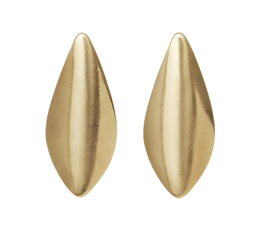 Thin Brass stampings with steel earring post. Slightly domed, approx 1.5" in length.