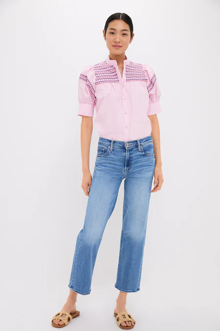 A fan-favorite, the Fondant Pink Saylor Shirt features feminine details like a colorful embroidered yoke and covered buttons down the placket, making it the sweetest top you'll wear all season. The versatility of this darling blouse is our favorite part though, it can be tucked in or left loose due to its longer hemline — so style it with your favorite denim and you're ready for anything!