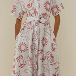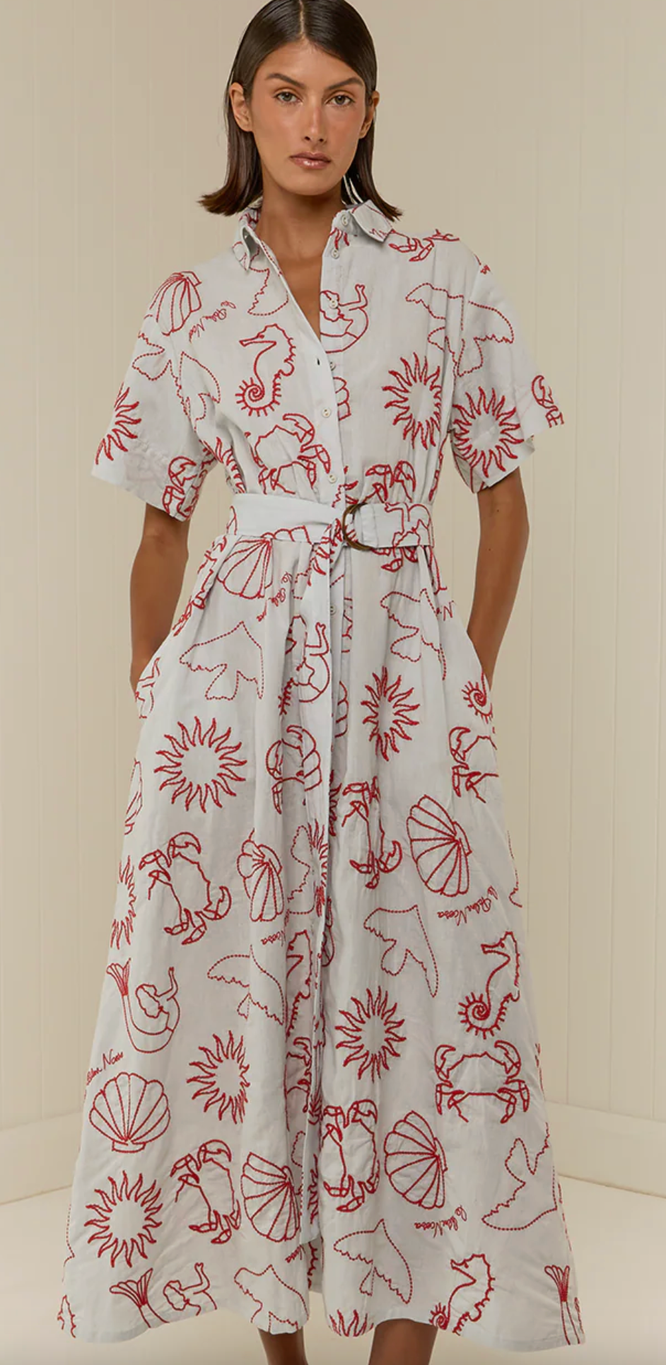 The Token Dress is crafted from a premium Cotton Linen blend, printed in our exclusive Le Palm print. The Token Dress features an all-over contrast embroidery detailing and is designed as a relaxed fit, featuring cuffed sleeves and centre front button detailing. Style with a matching D-ring belt to cinch the waist and create a relaxed yet elevated look. Please refer to our size and fit guide for further fit details.