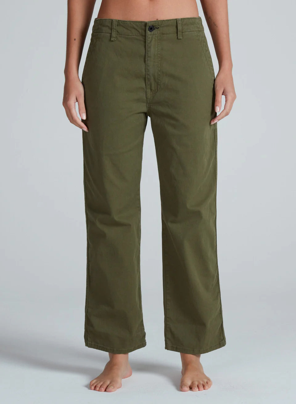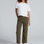 An easy mid weight pant with a cool, straight fit. The Tomboy sits high on the waist with a slightly relaxed leg that hits just above the ankle. Designed with utility-inspired back patch pockets and crafted in soft, stretchy twill for laid-back structure and everyday comfort.