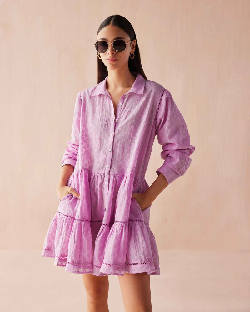 The ultimate collared mini dress has arrived—crisp yet playful, with a touch of volume. Thoughtfully designed with pockets, this piece is as practical as it is beautiful.