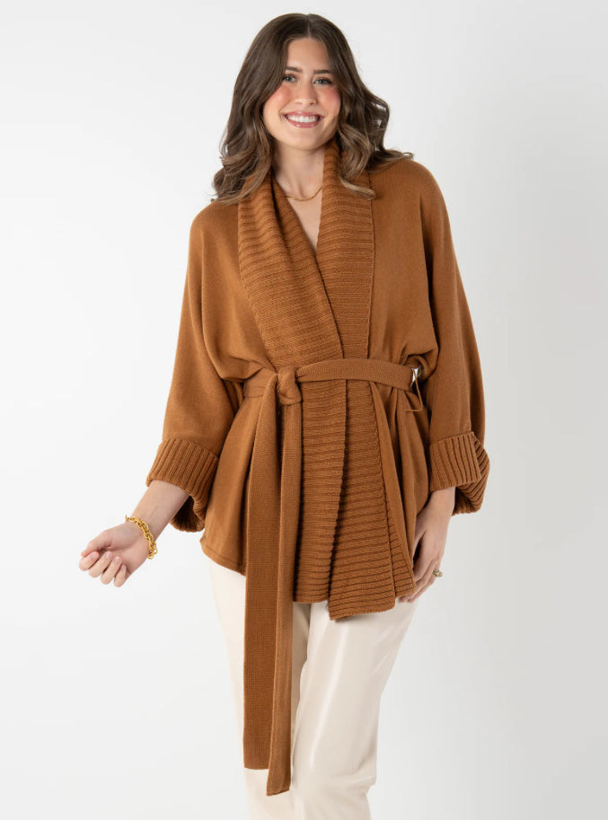 The Willow Wrap in Mocha is the definition of cozy sophistication. Crafted in a sumptuous cashmere–cotton blend, this wrap-style cardigan features a plush, chunky rib knit trim at the neckline and hem for a luxe textural touch. Its oversized silhouette drapes effortlessly, while the optional tie waist lets you cinch it in for a more defined shape. Equal parts comfort and elegance, it’s the perfect layer to wrap yourself in from brisk mornings to fireside evenings.